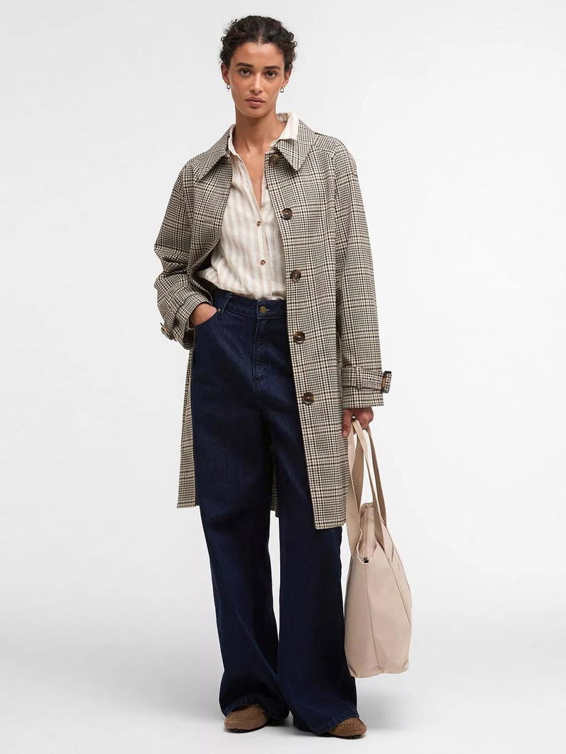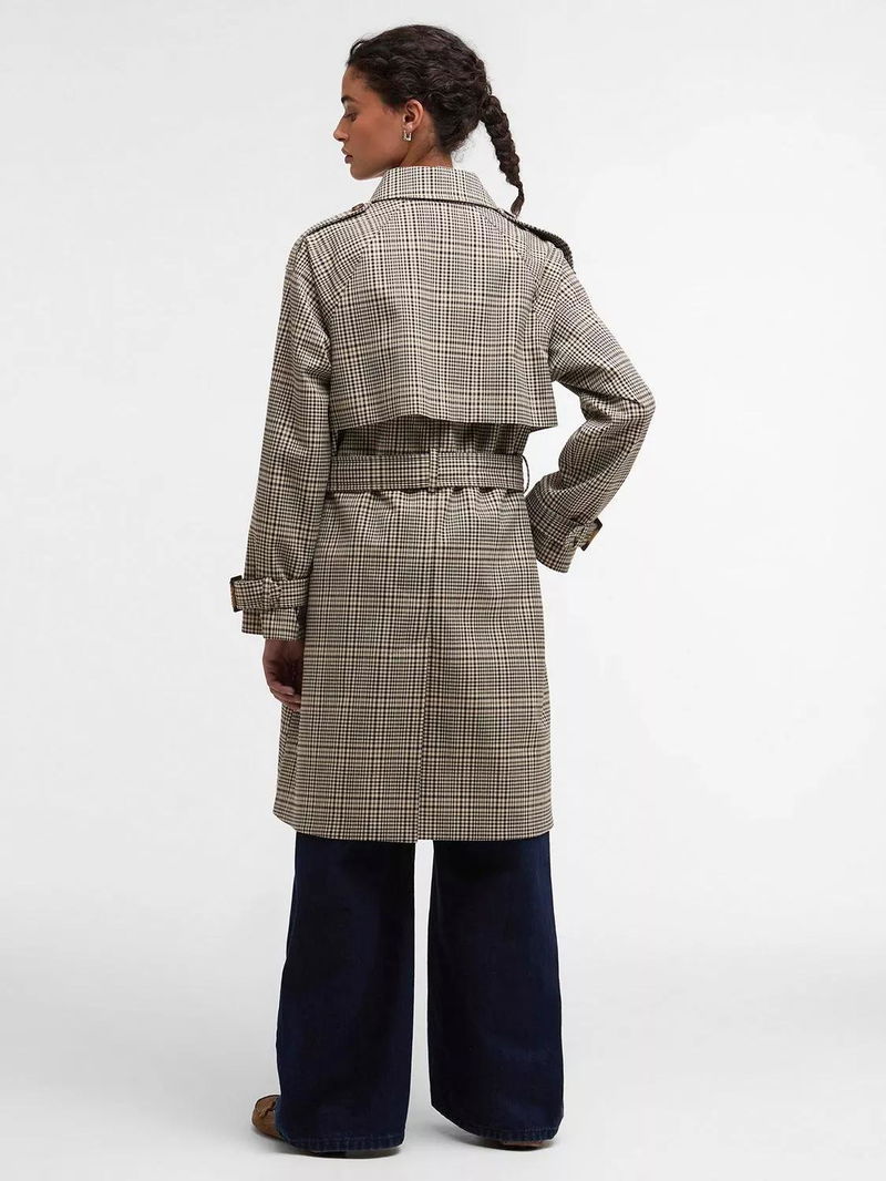 Maia Check Showerproof Trench Coat, Olive Prince Of Wale