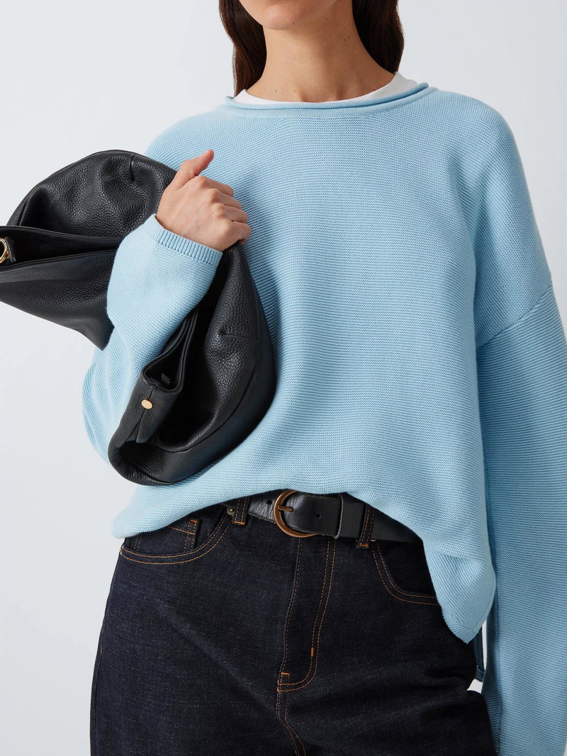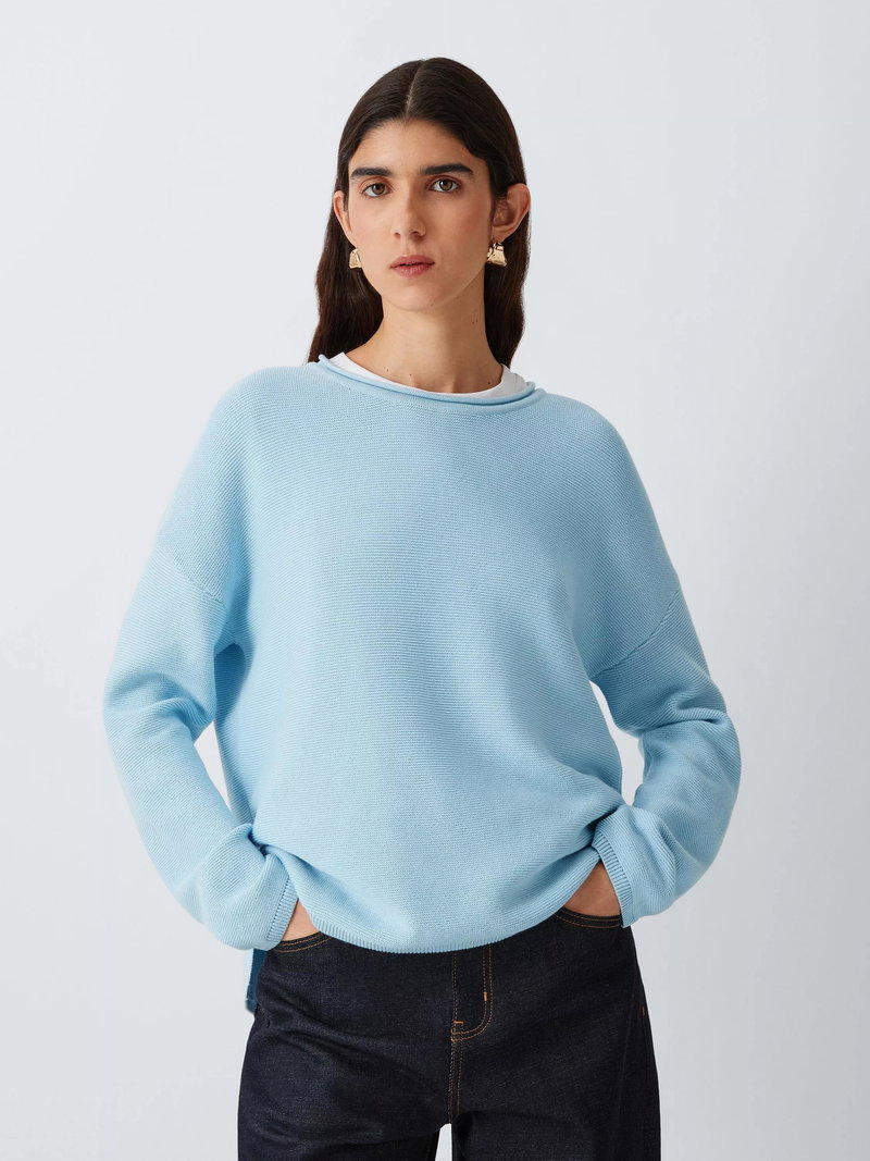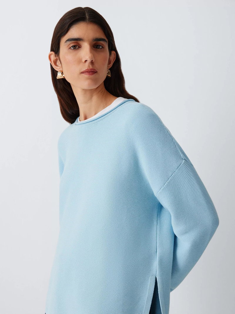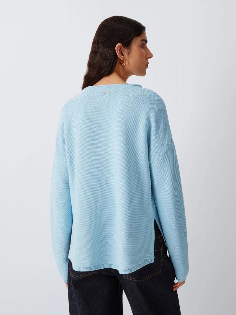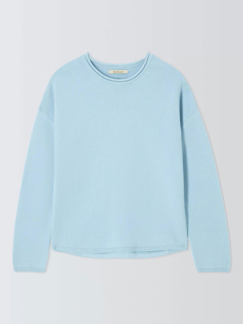 A versatile layering piece, the Barbour Marine Knitted jumper features a slightly cropped fit for a contemporary look. This easy cotton basic is woven in an all-over textured stitch, while the dropped shoulders and side splits at the hem give it a relaxed feel.