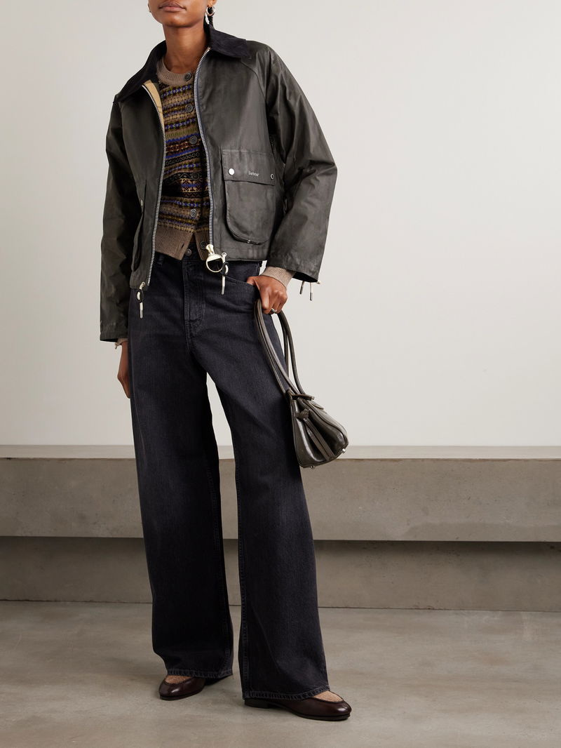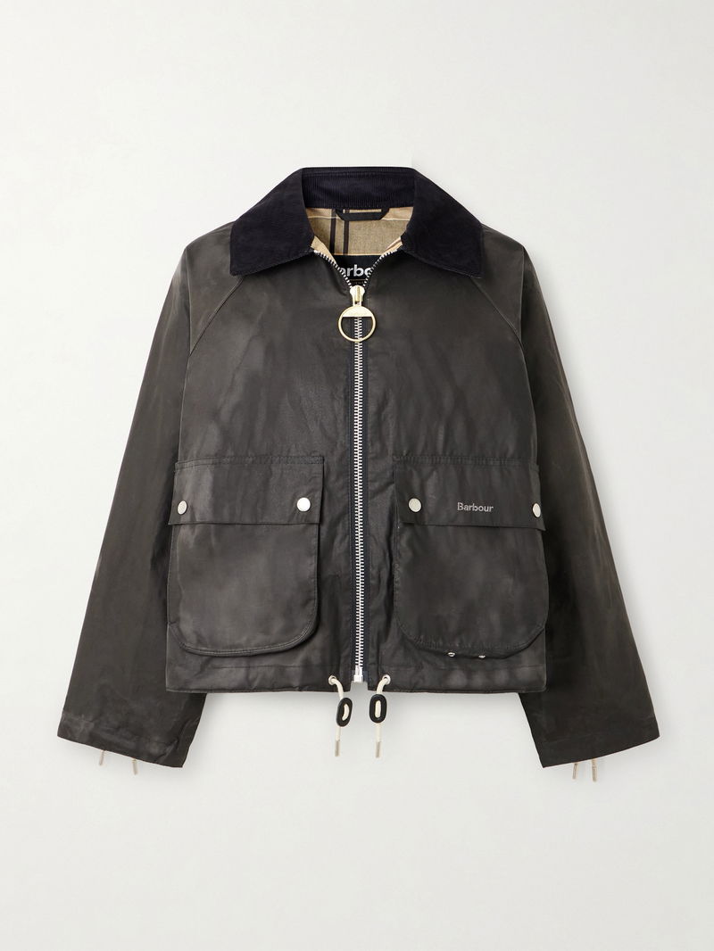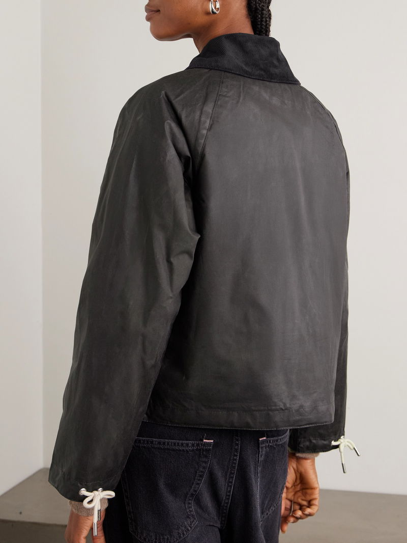 Marron Leather And Corduroy-trimmed Waxed-cotton Jacket