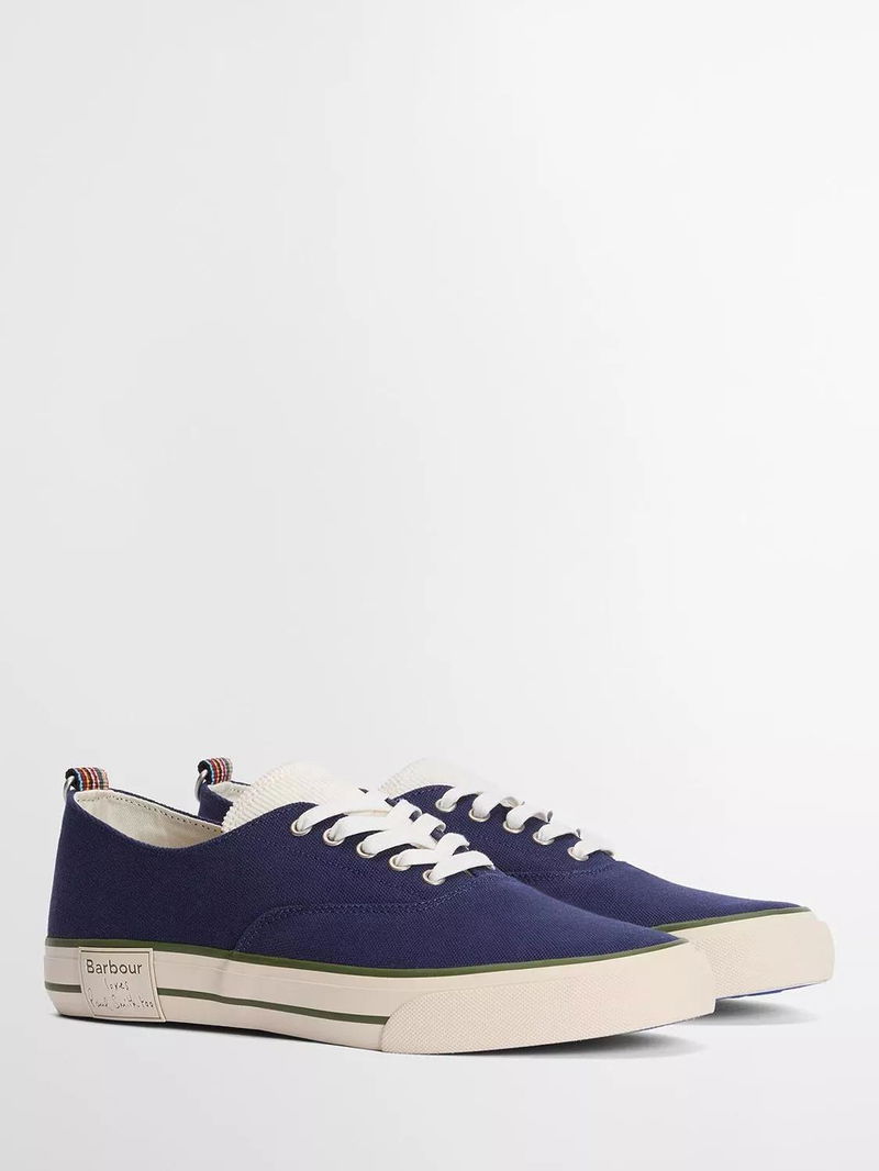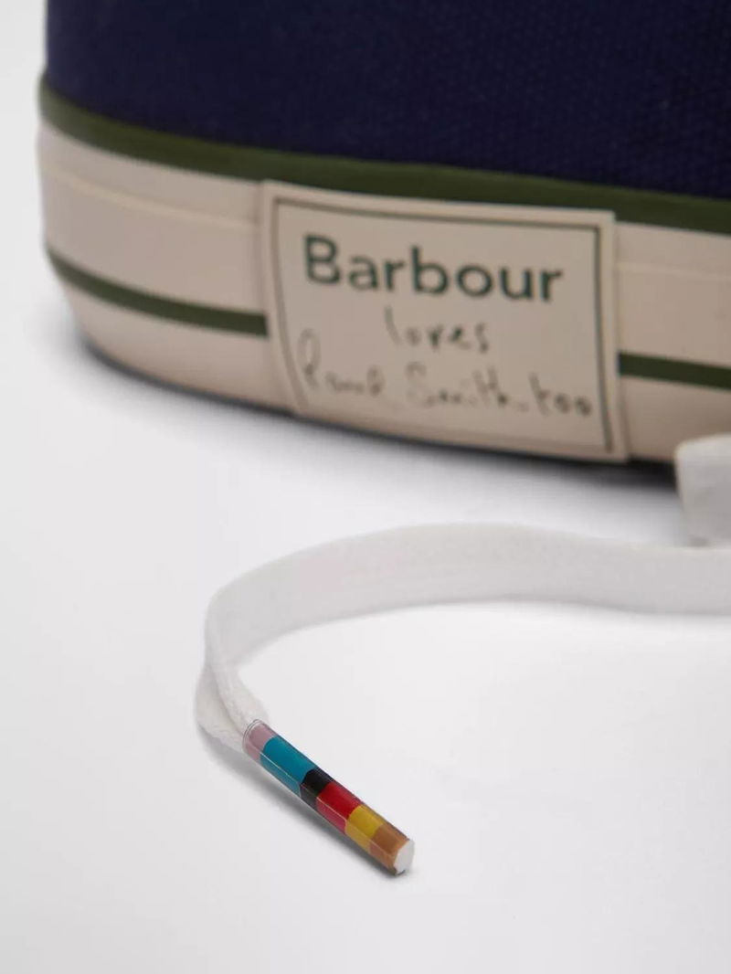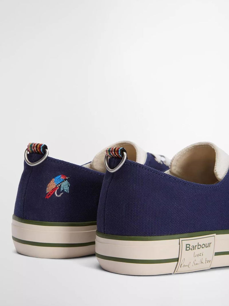 The collaboration between Barbour and Paul Smith effortlessly blends Barbour's iconic country heritage with Paul Smith's signature irreverence. These classic plimsolls are a reliable everyday staple - reimagined with character and countryside charm.