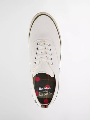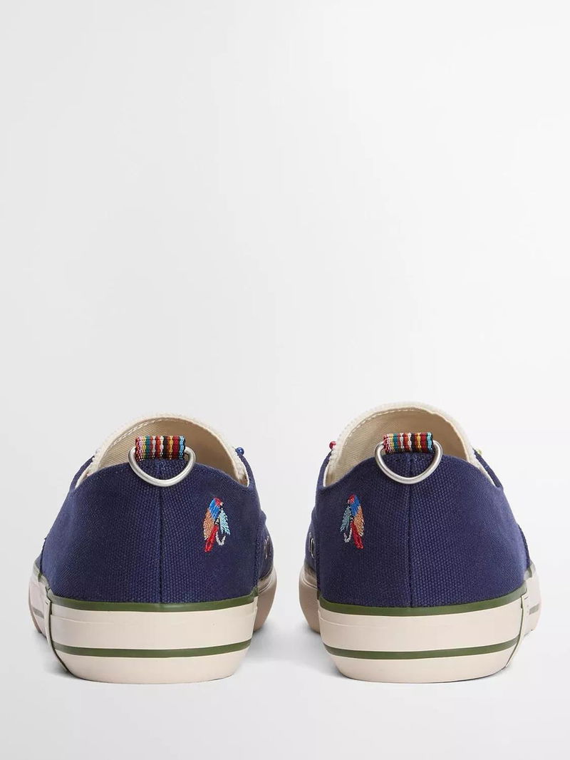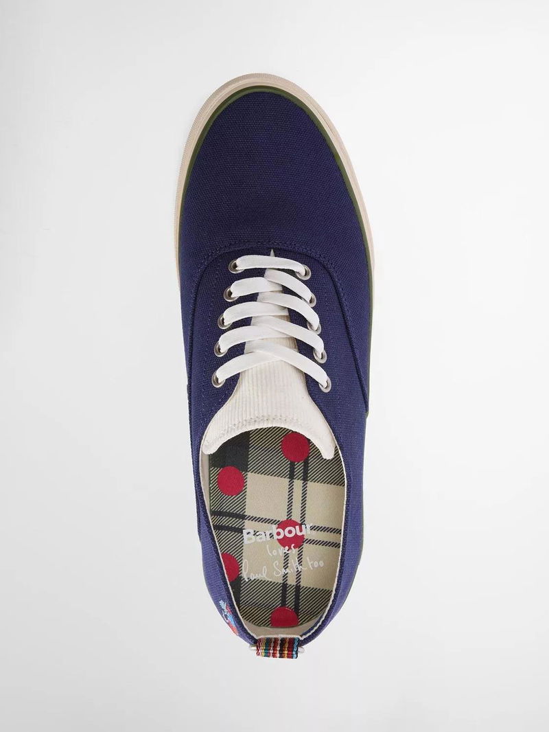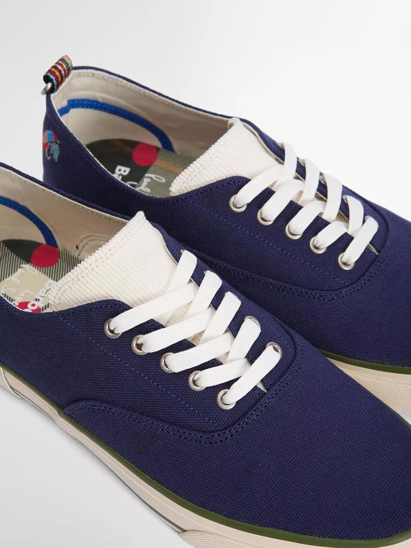 Crafted from durable canvas with a vulcanised sole for all-day comfort. This classic plimsoll gets a playful twist with a hand-embroidered fly lure detail, nodding to Barbour's outdoor heritage.