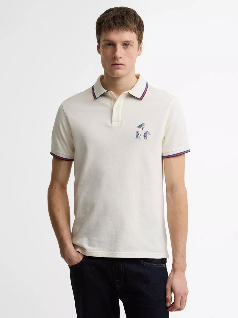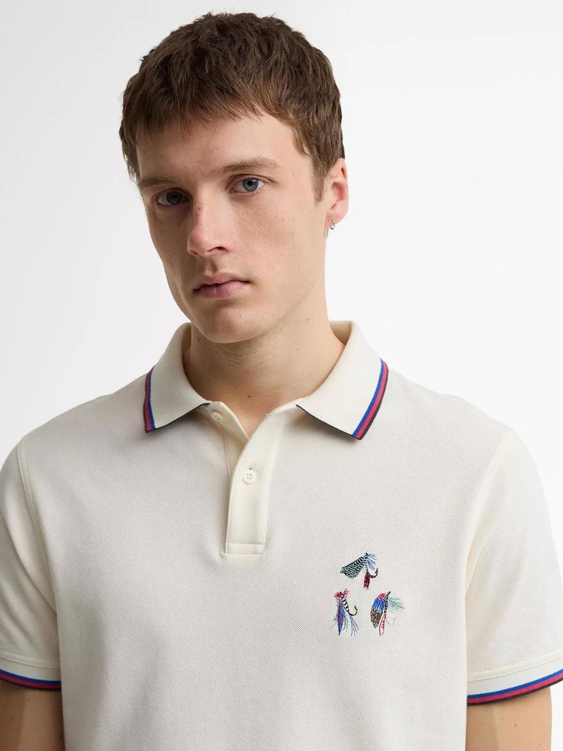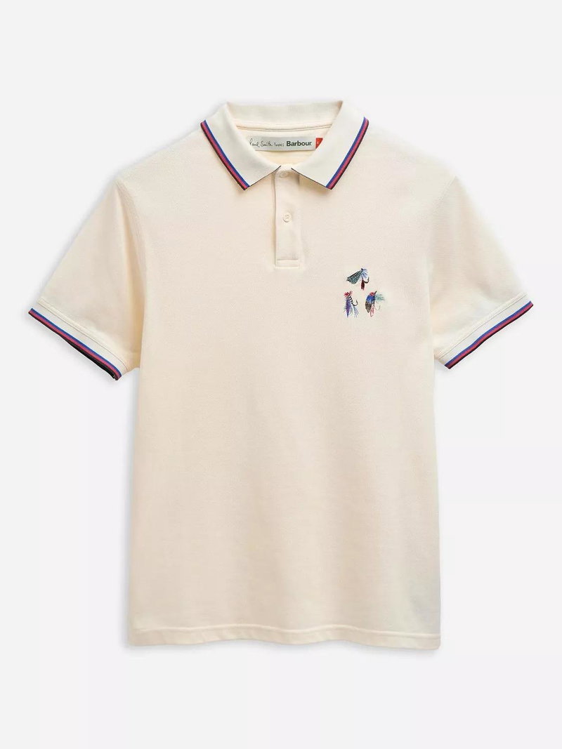 A staple of the Paul Smith Loves Barbour collection, the Lure Polo Shirt brings subtle character to a classic silhouette. Crafted from soft cotton, it features a hand-stitched fishing lure motif — a playful nod to Barbour's coastal heritage and Paul Smith's signature charm.