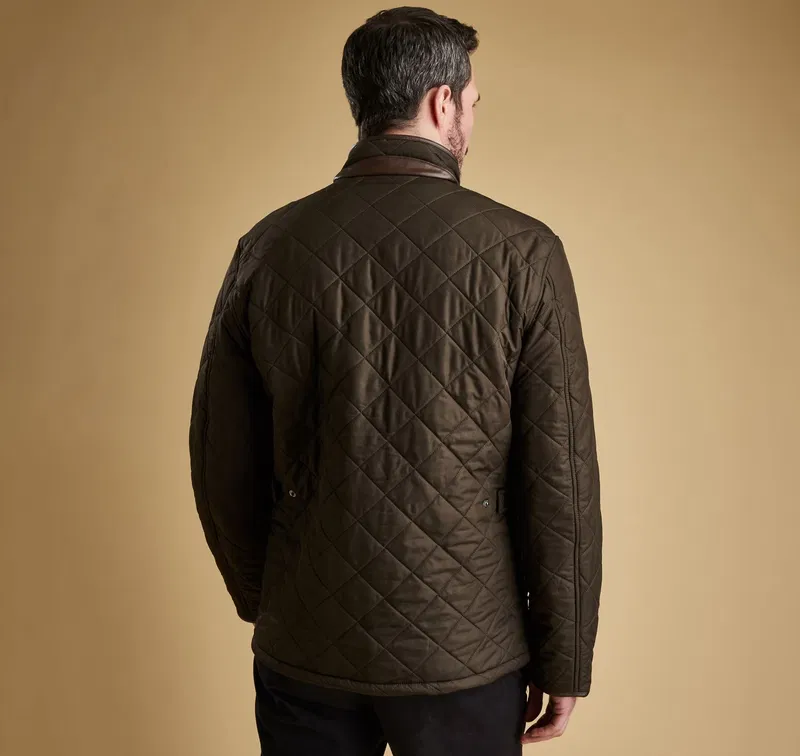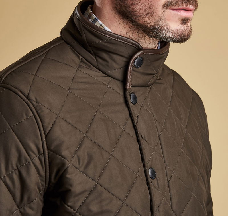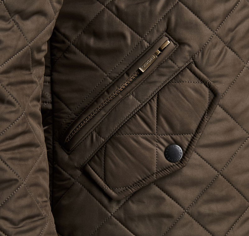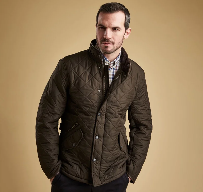 Built for the outdoors but without compromising on style, the Powell is a quilted Chelsea-style jacket that proves a firm favourite year after year. From the Hacking collection, this timeless and practical fleece-lined jacket offers reliable warmth, thanks to the iconic quilted outer with 50g wadding and a super-insulating fleece lining. The two-way zip with Barbour branded ring puller fastens through to a corduroy-lined funnel neck, which can be closed with the robust studfastenings for extra protection from wind and rain. A slimmer, contemporary shape gives a fashionable look, with back waist tabs for an adjustable fit that's ideal for essential winter layering. Two practical front pockets offer plenty of room to carry essentials, with an additional zipped pocket to safeguard valuables. Available in a choice of four wearable colours, a stylish synthetic leather trim finishes the collar and cuffs, and tonal Barbour embroidery trims the pocket flap.