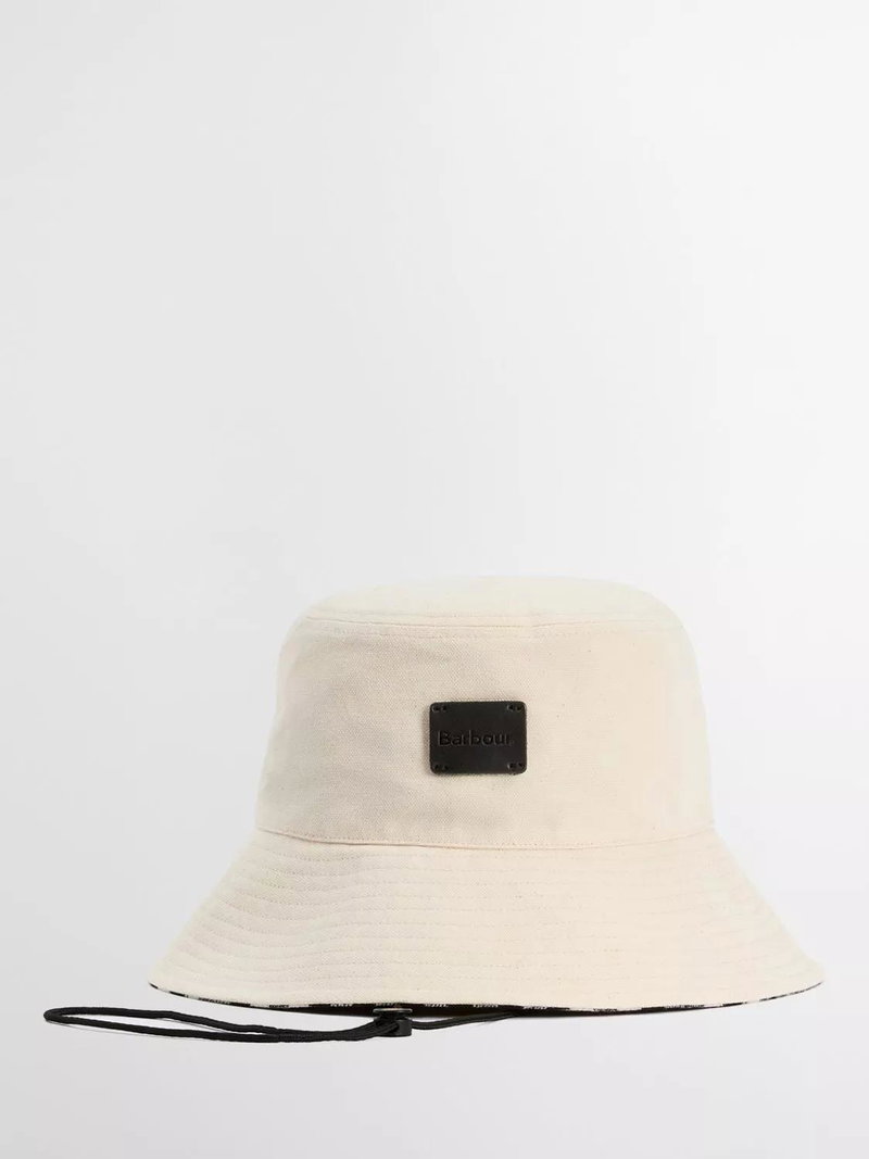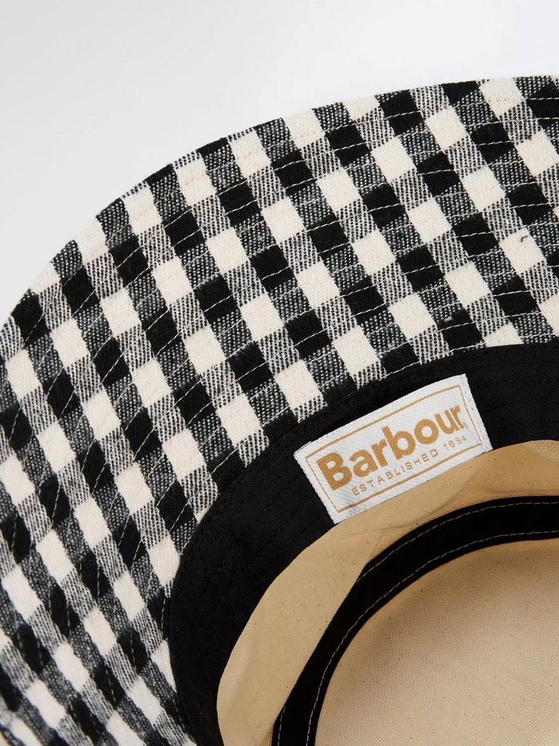 The Barbour Selena Bucket Hat is a charming and versatile accessory, perfect for sunny days. Crafted from durable cotton canvas, it features a stylish gingham trim under the brim for a playful touch. The removable, adjustable chin strap with a Barbour-branded toggle ensures a secure fit, while the large Barbour-embossed patch on the centre front adds a bold branded finish. A must-have for both practicality and style.