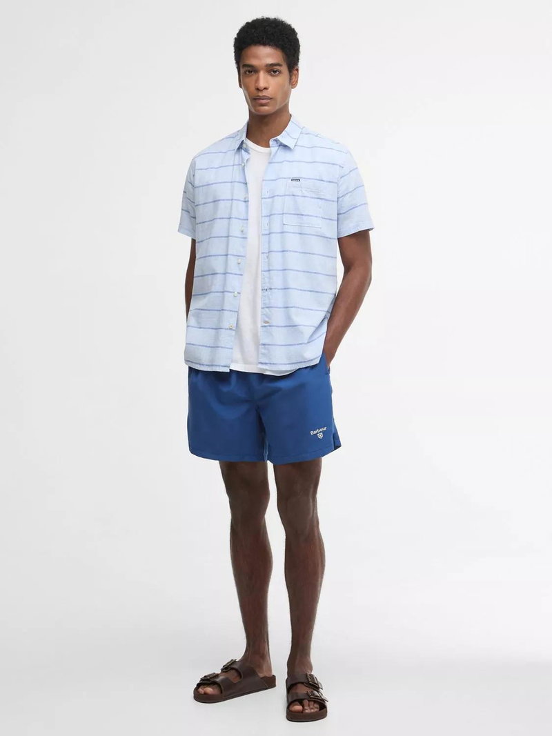 These swim shorts are designed with a flexible drawcord waistband and the iconic Barbour logo print to the leg for a classic approach to beach days.