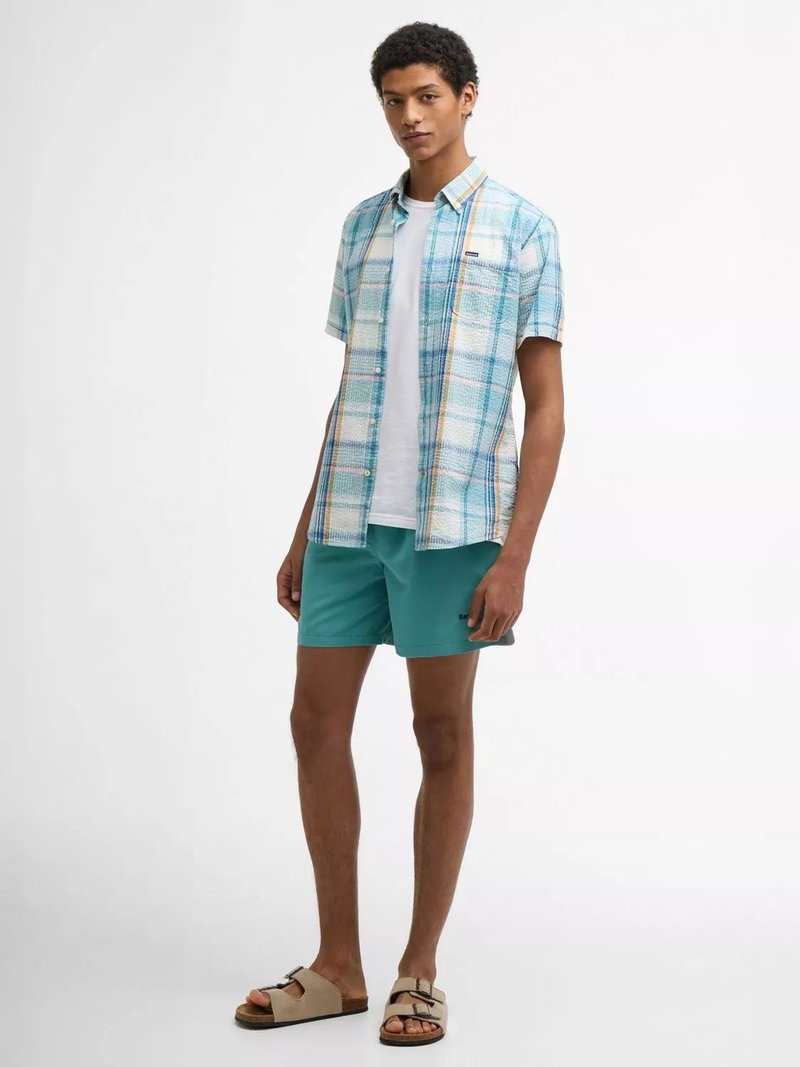 These swim shorts are designed with a flexible drawcord waistband and the iconic Barbour logo print to the leg for a classic approach to beach days.