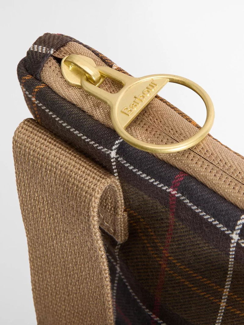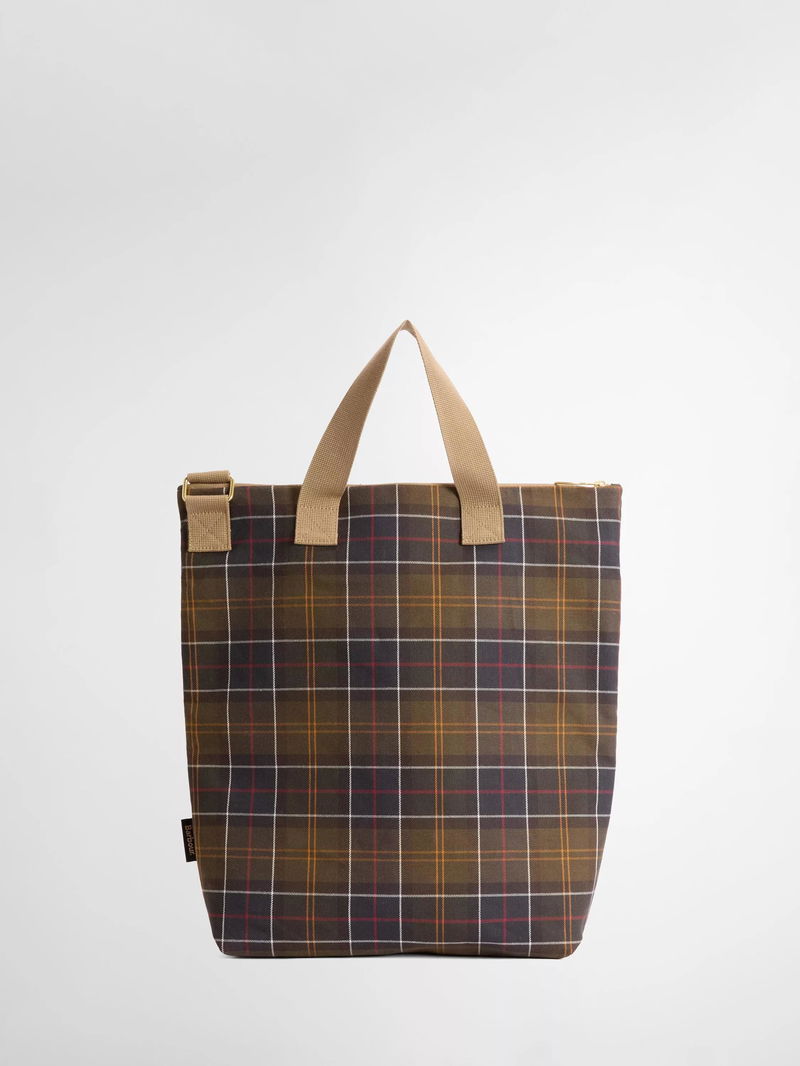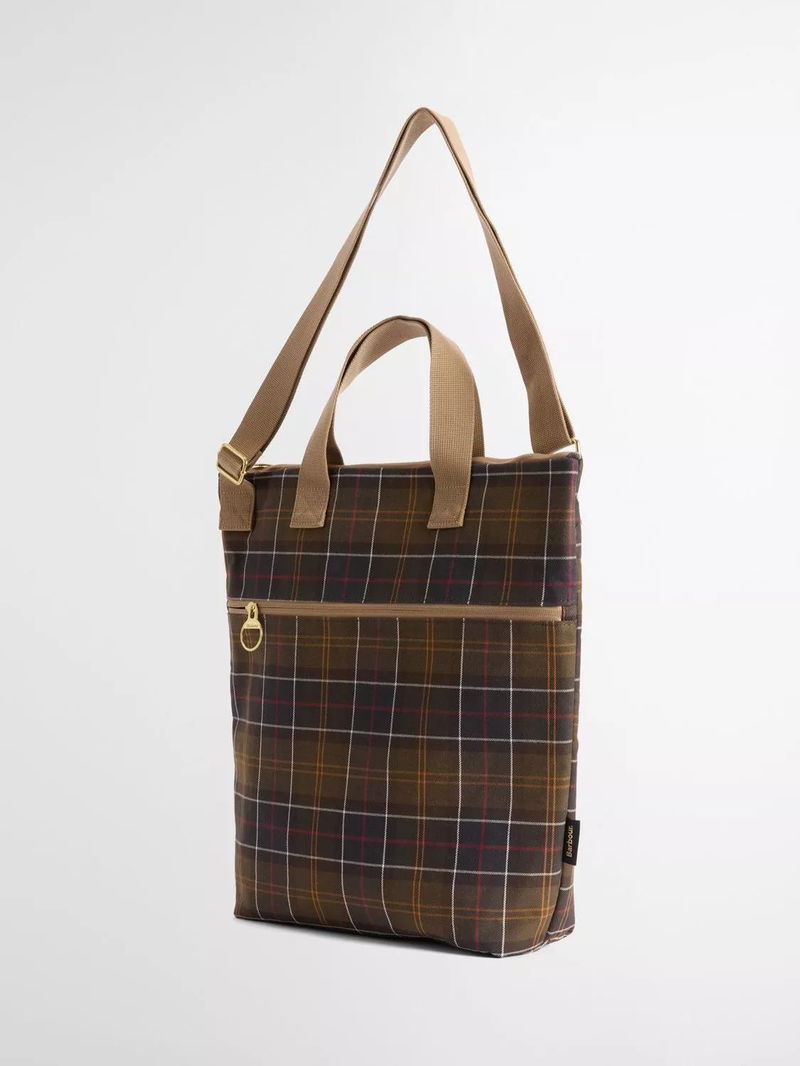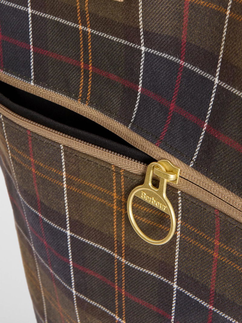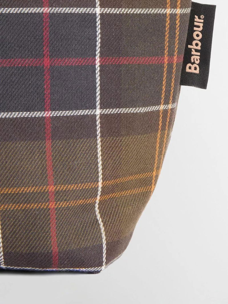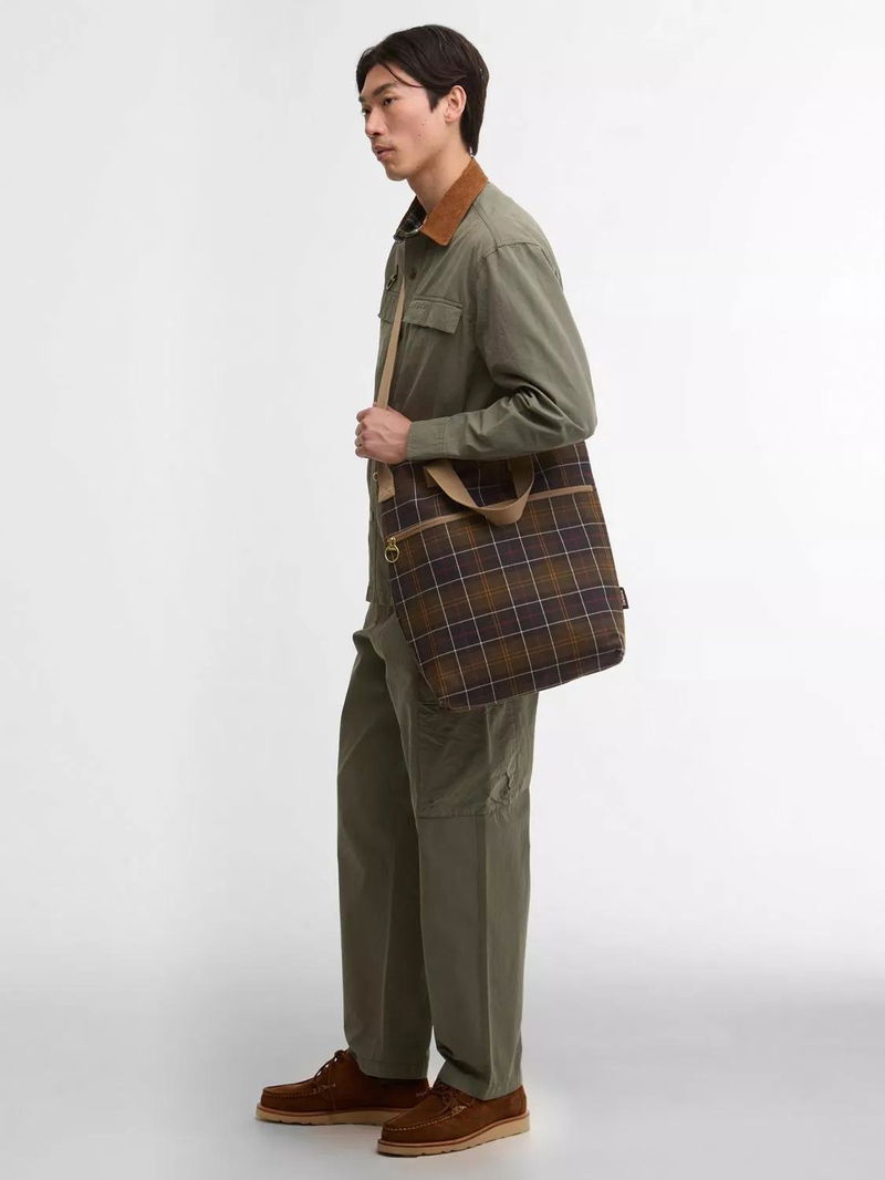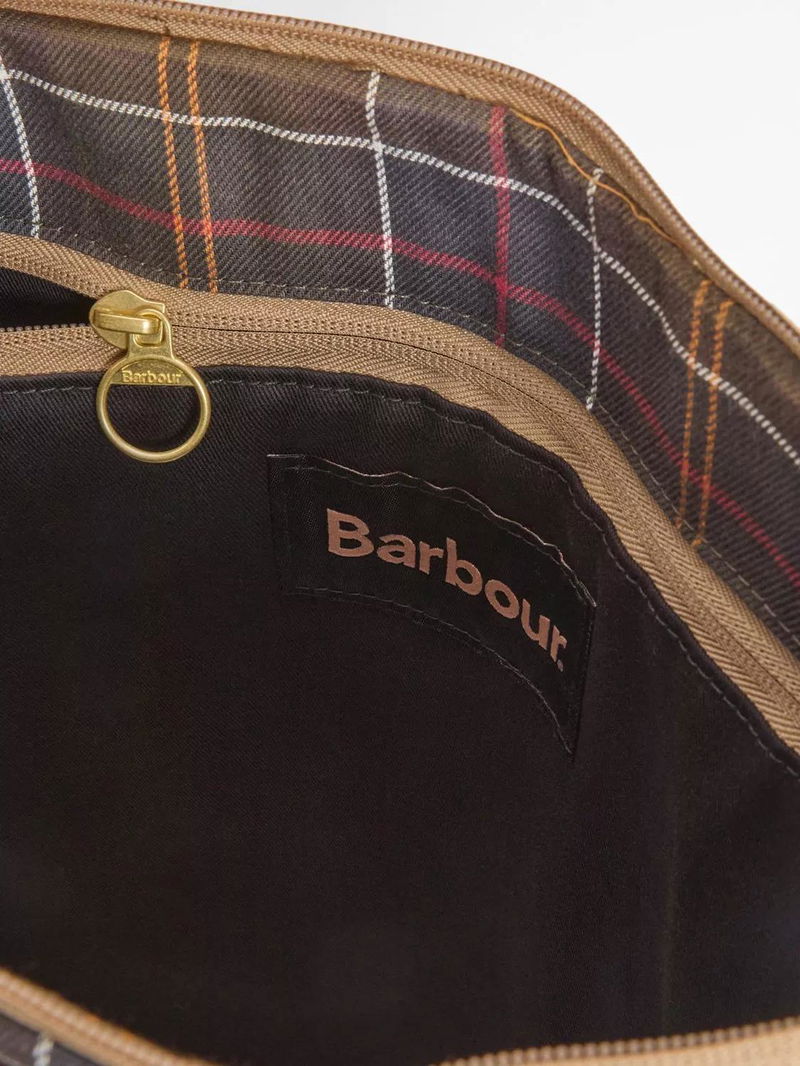 The Barbour Transport Tote Bag is a durable and versatile accessory, crafted from dry waxed fabric for a rugged yet stylish look, with gold-toned handware. It features an adjustable shoulder strap, grab handles, a zipped outer pocket and Barbour tartan outer. Secured by a zip closure, inside, the bag is lined and comes with an internal zipped pocket.