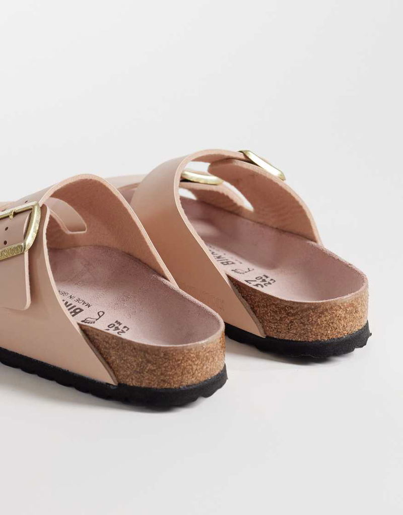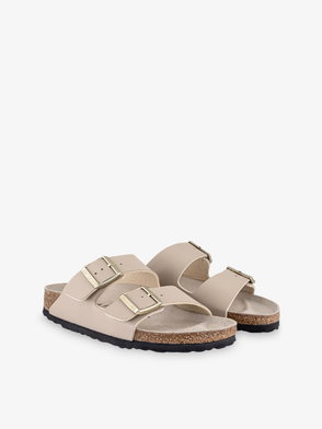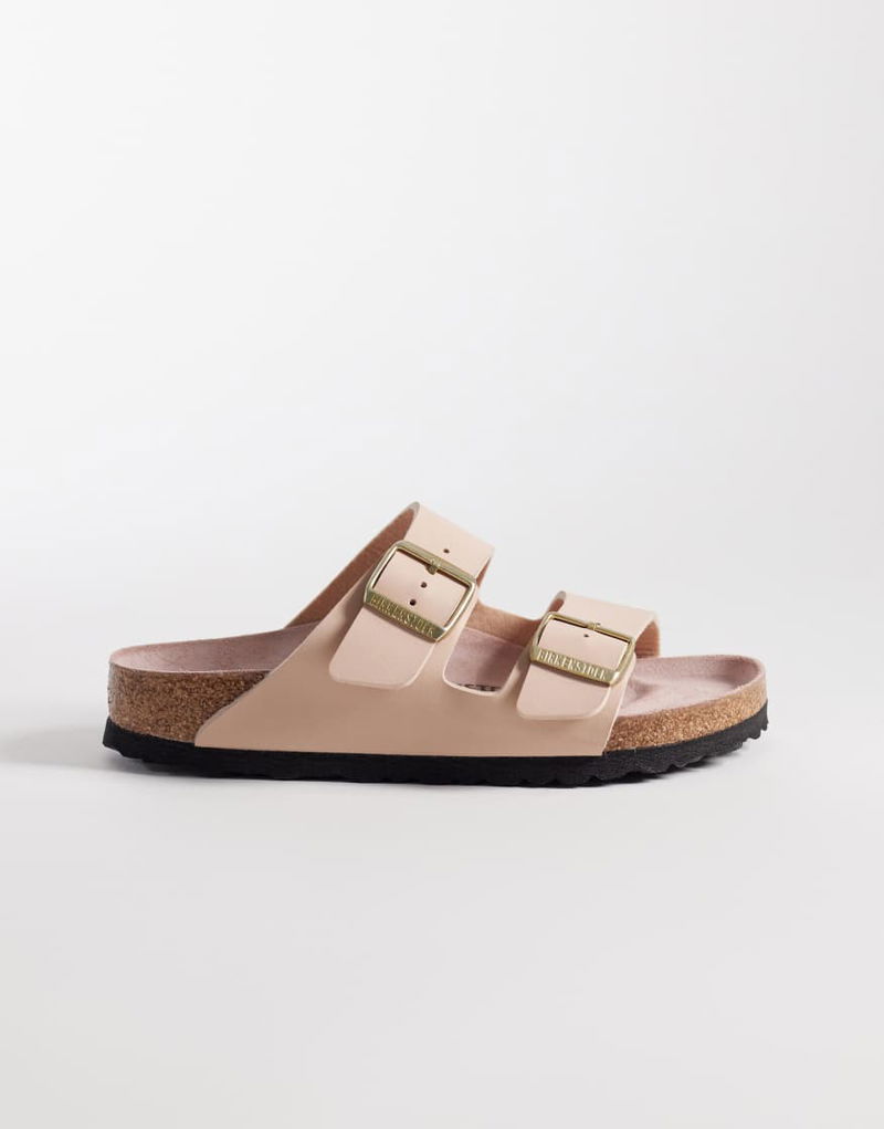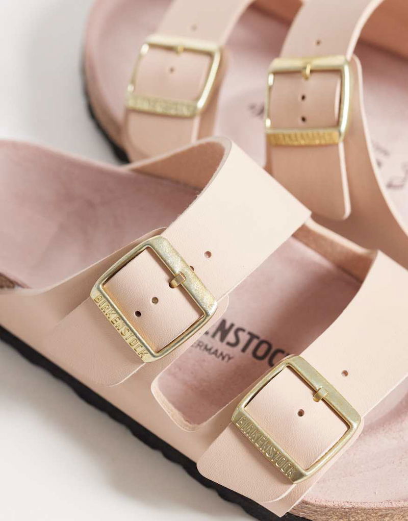 Arizona birko-flor sandals. Pin-buckle fastening. Double straps. Signature Birkenstock branding. Open toe with raised indentations to support the rolling motion of the foot. Contoured cork footbed conforms to the shape of your foot over time for a custom fit. Pronounced arch support for extra stability. Elastic EVA sole provides lightweight cushioning and shock absorption.