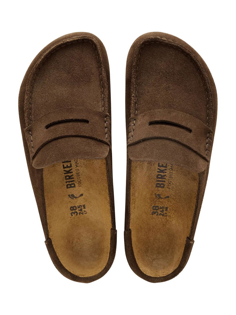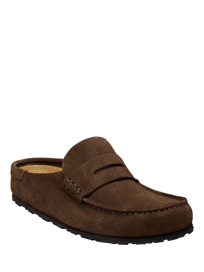 The Birkenstock Naples Wrapped is the closed version of the popular semi-open Buckley clog. The moccasin style, with striking stitching, lends this sandal a distinctive and masculine appearance. Thanks to its two components, the sole promotes a firm and comfy footing. It comprises a cushioning midsole made from EVA and an outsole made from genuine rubber. Its natural design is down to the upper made from especially soft suede, which hugs the foot like a second skin.