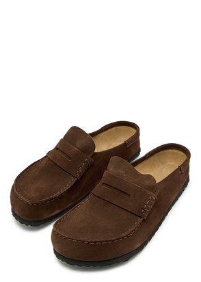 The Birkenstock Naples Wrapped is the closed version of the popular semi-open Buckley clog. The moccasin style, with striking stitching, lends this sandal a distinctive and masculine appearance. Thanks to its two components, the sole promotes a firm and comfy footing. It comprises a cushioning midsole made from EVA and an outsole made from genuine rubber. Its natural design is down to the upper made from especially soft suede, which hugs the foot like a second skin.