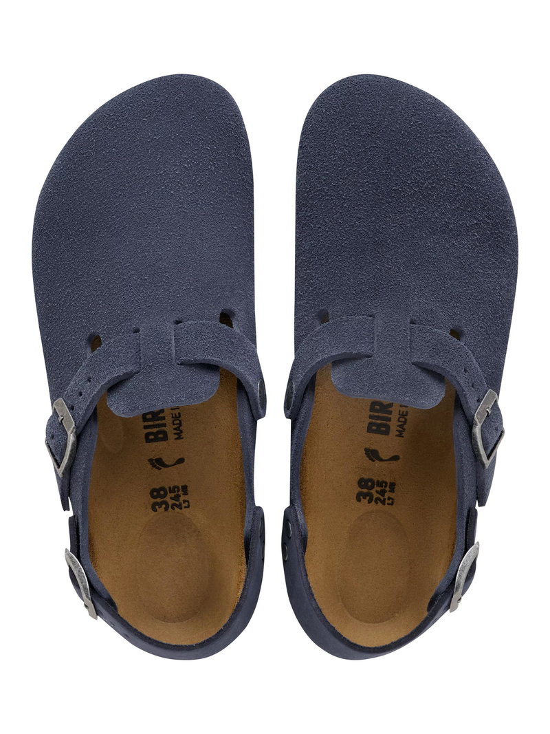 The Birkenstock Tokio clog is a variation of the classic Boston. The model is characterised by its ankle strap and can easily be worn at any time of the year. The upper is made from especially soft suede, which hugs the foot like a second skin.