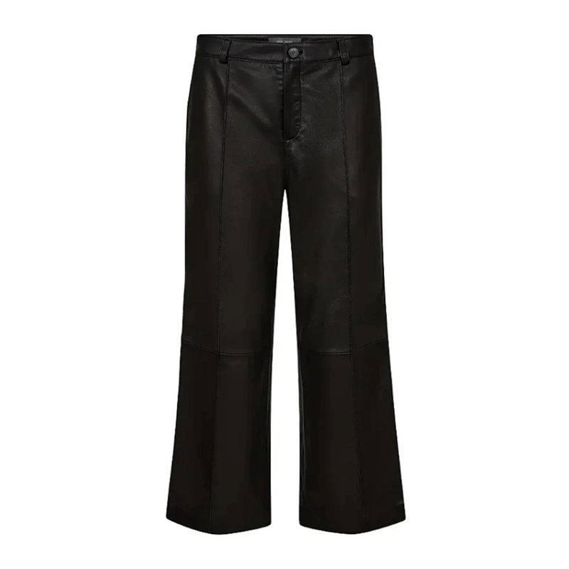 Elevate your style with these chic leather trousers from Mos Mosh. Featuring wide legs, high waist, and button closure at the front. Crafted from 100% lambskin in classic black color.