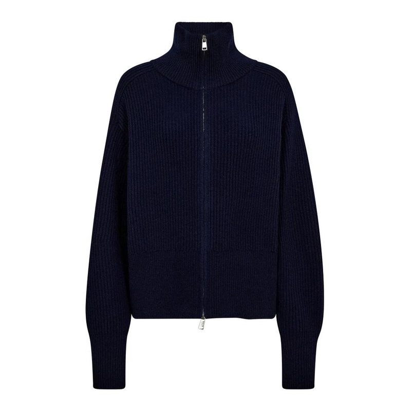 Stay cozy and stylish with this luxurious cardigan from Mos Mosh. Featuring long sleeves, high neck, and a front zip closure. Loose fit design in 100% wool.