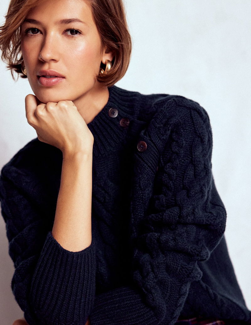 Amara Merino Cable Jumper-Navy