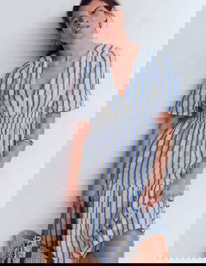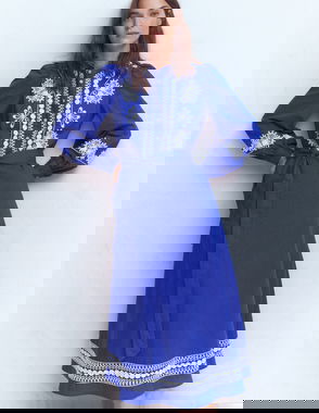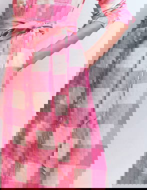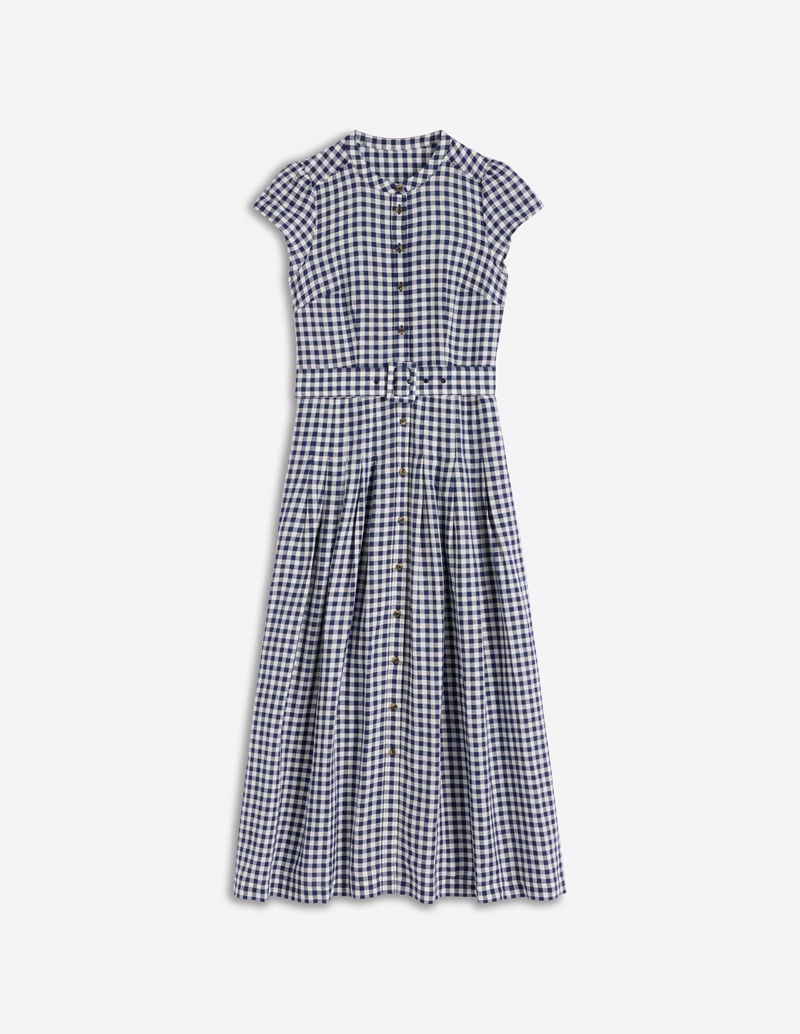 Arabella Linen Blend Dress-Blue Gingham