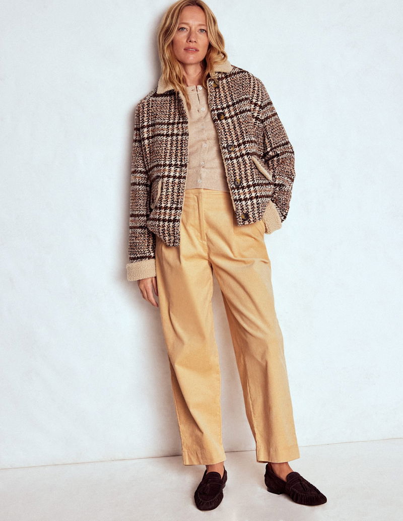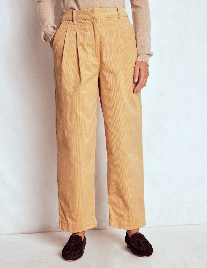 Effortlessly flattering these cord trousers are warm and smart with added soft volume and plush pleats. Pair with a cashmere cardi and loafers for work or a sweater for thanksgiving dinners.