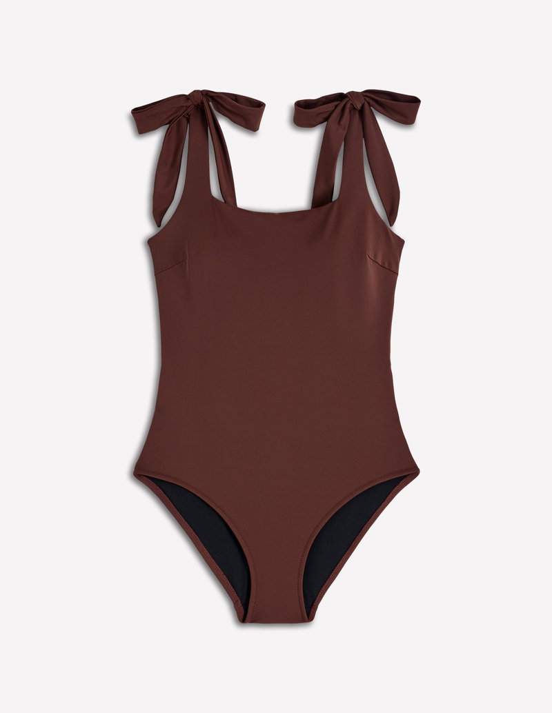 Bow Tie Shoulder Swimsuit-Cinnamon