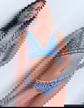 Campania Cross-back Bikini Top-Navy, Green, Blue Colourblock