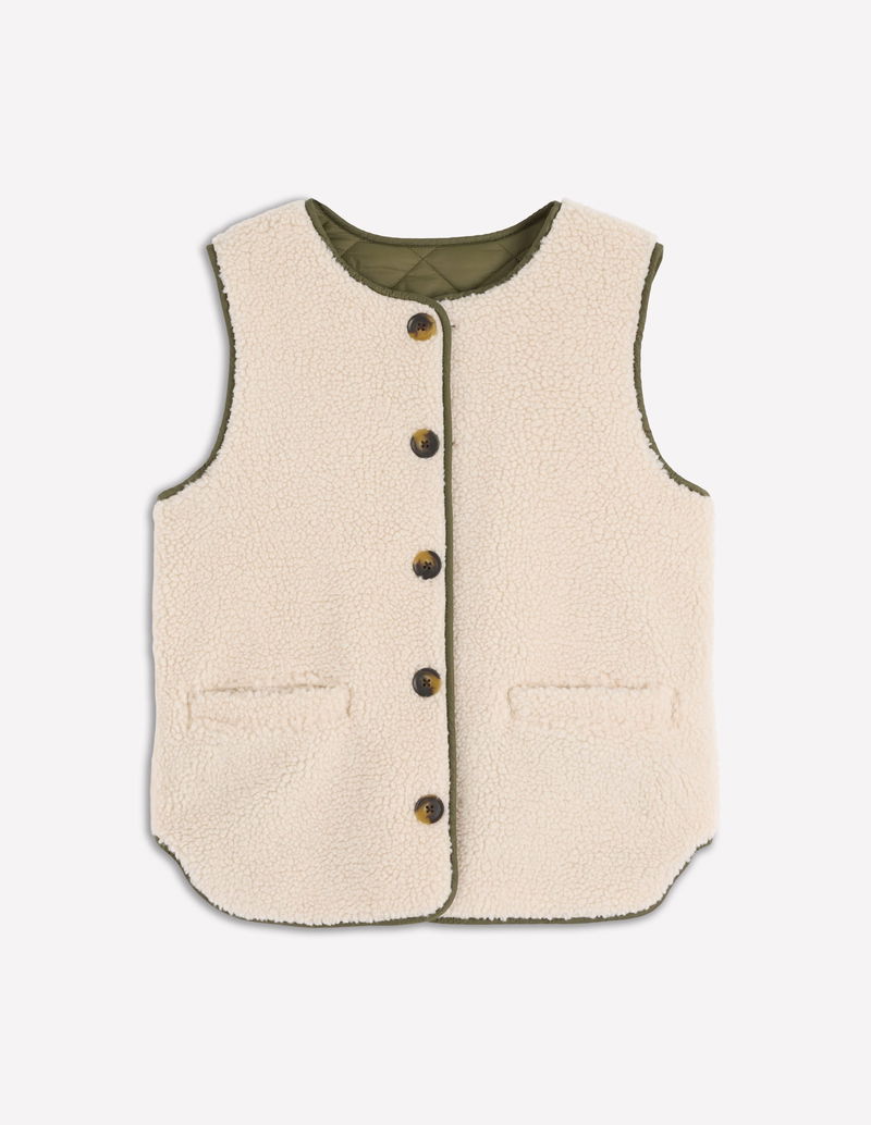 Clerkenwell Reversible Gilet-Woodland Green, Natural Borg