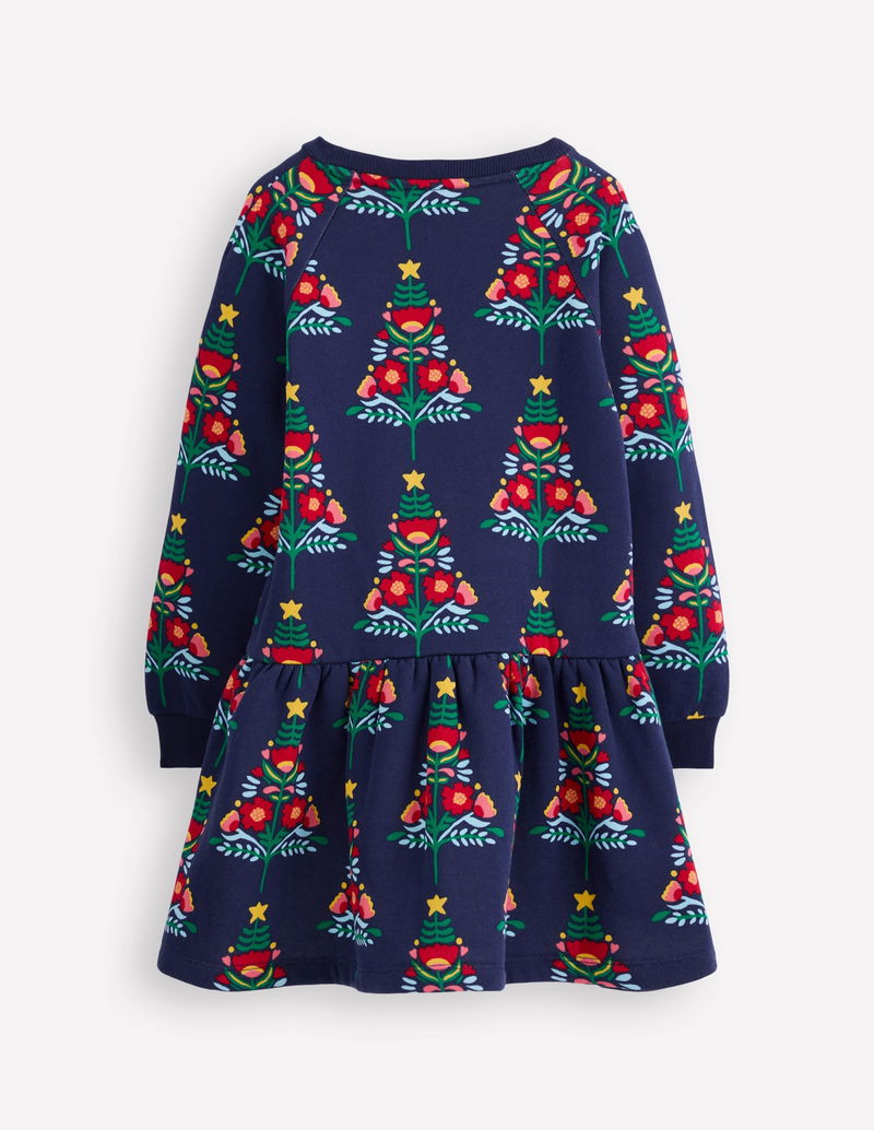Cosy Sweatshirt Dress-College Navy Christmas Trees