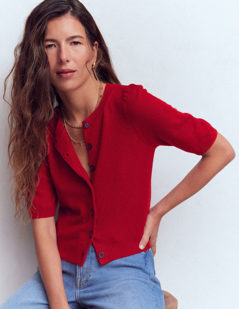 Cropped Cashmere Cardigan-Ash Red