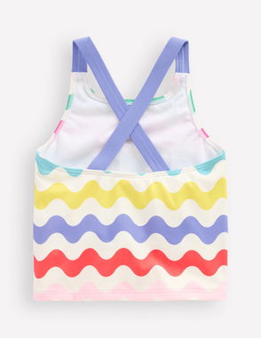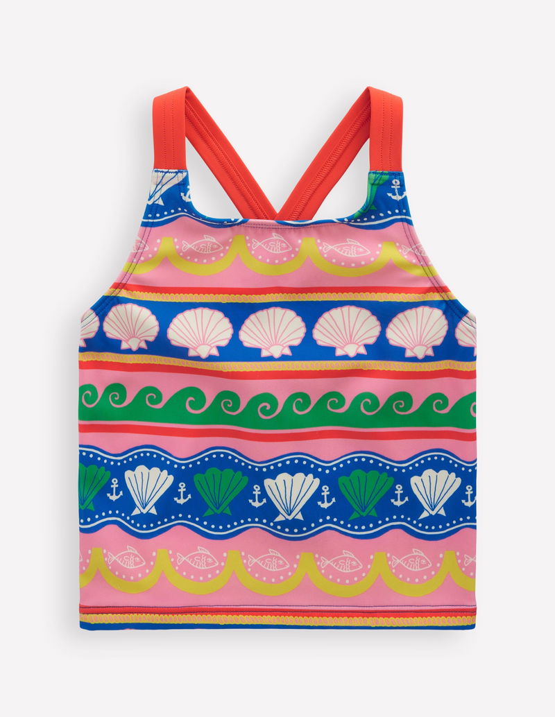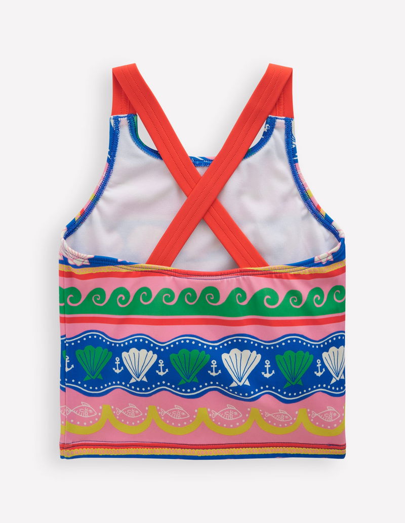 Cross-Back Tankini Top-Multi Sea Shell Stripe