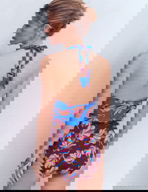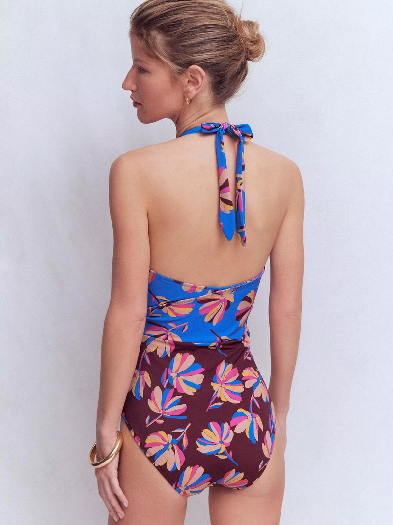 Daisy Cascade Wrap Over Swimsuit, Multi