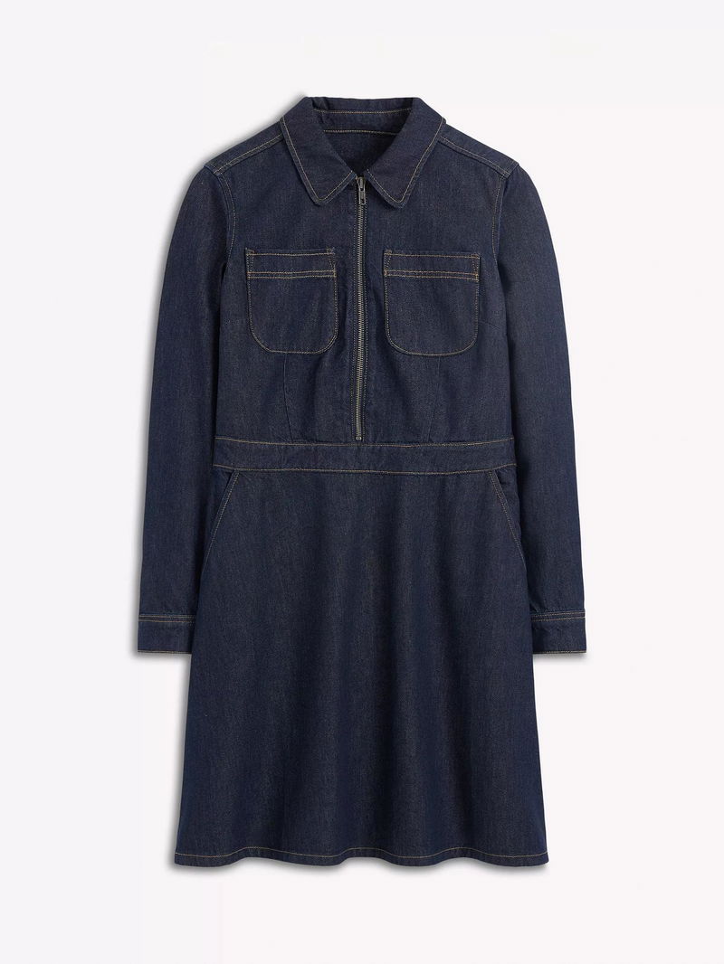 Denim Shirt Flippy Dress, Indigo Blue