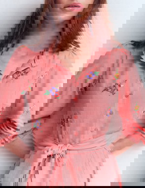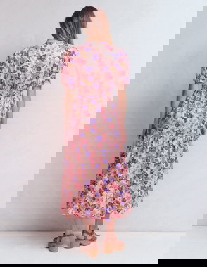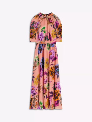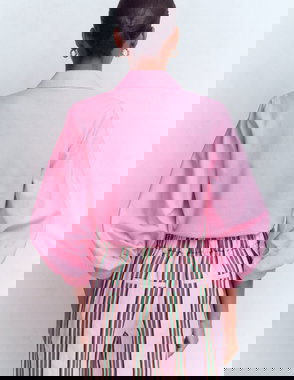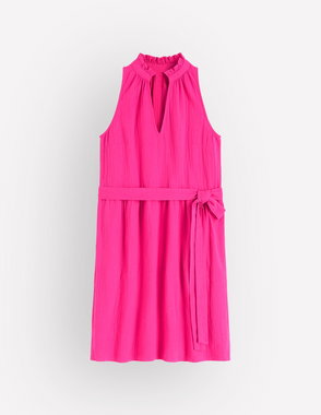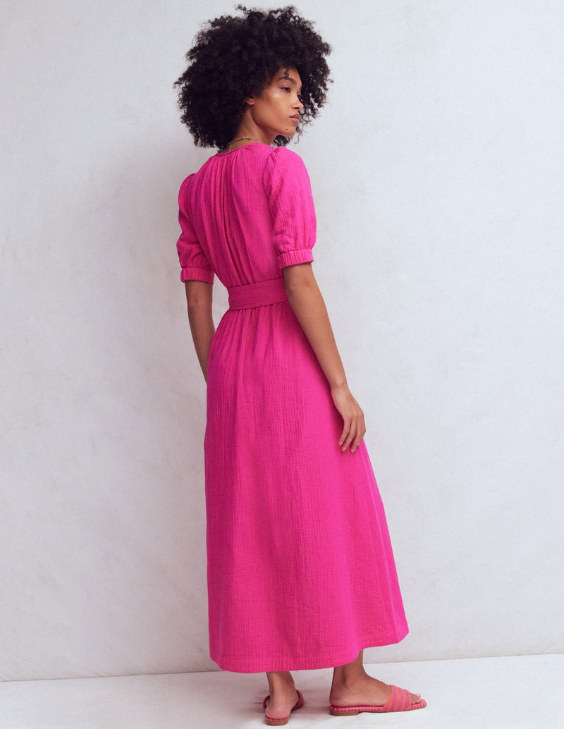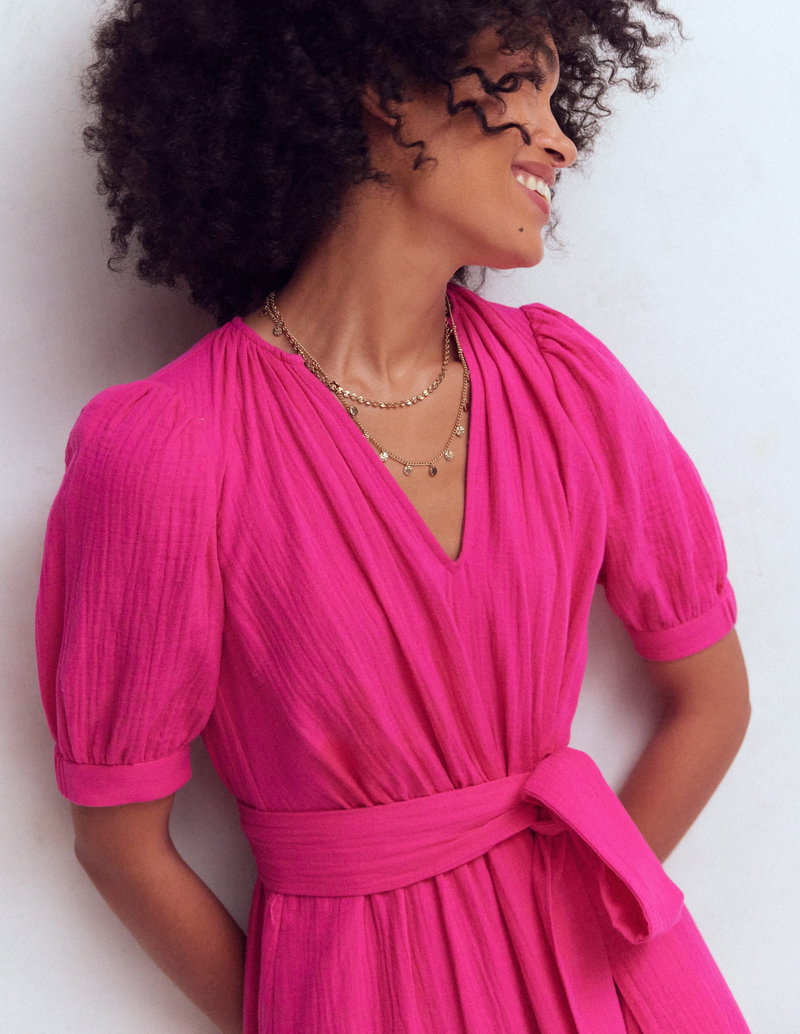 Double Cloth Puff Sleeve Dress-Bright Pink