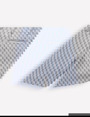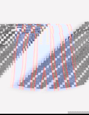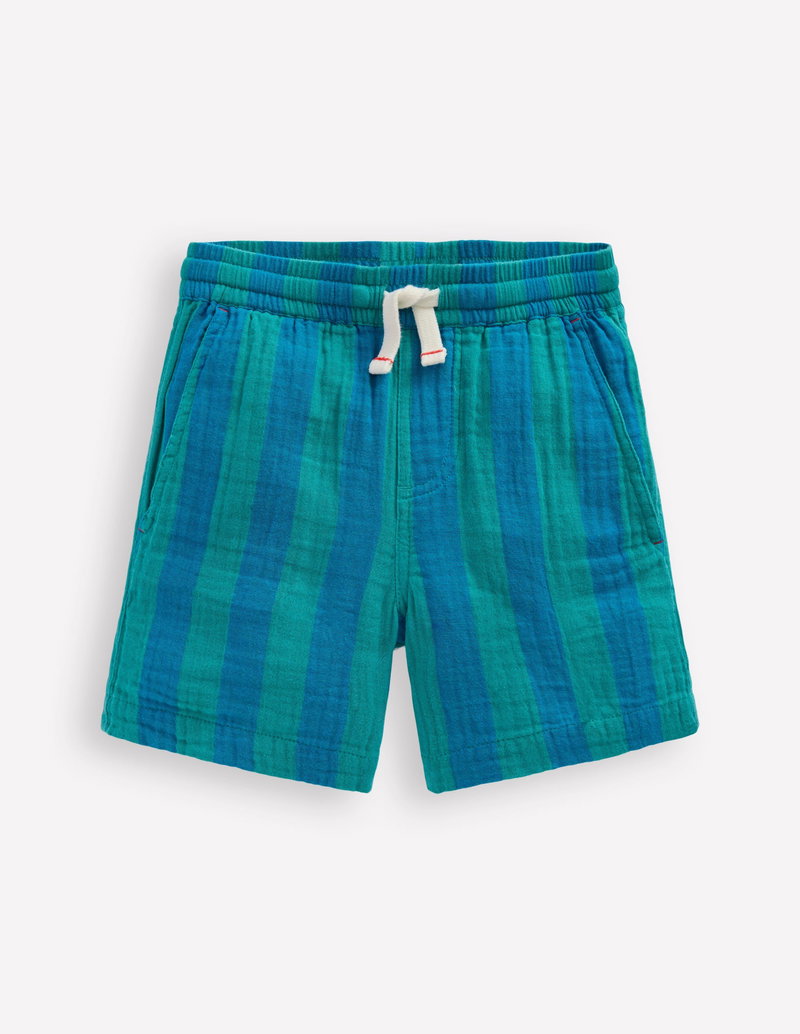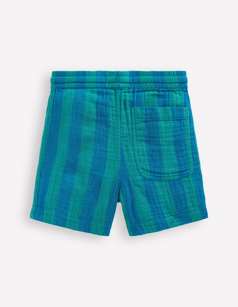 Double Cloth Shorts-Green And Blue Stripe