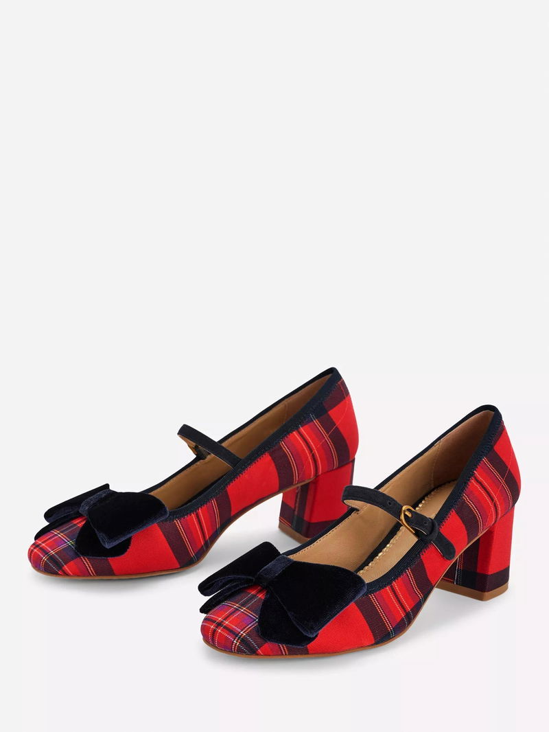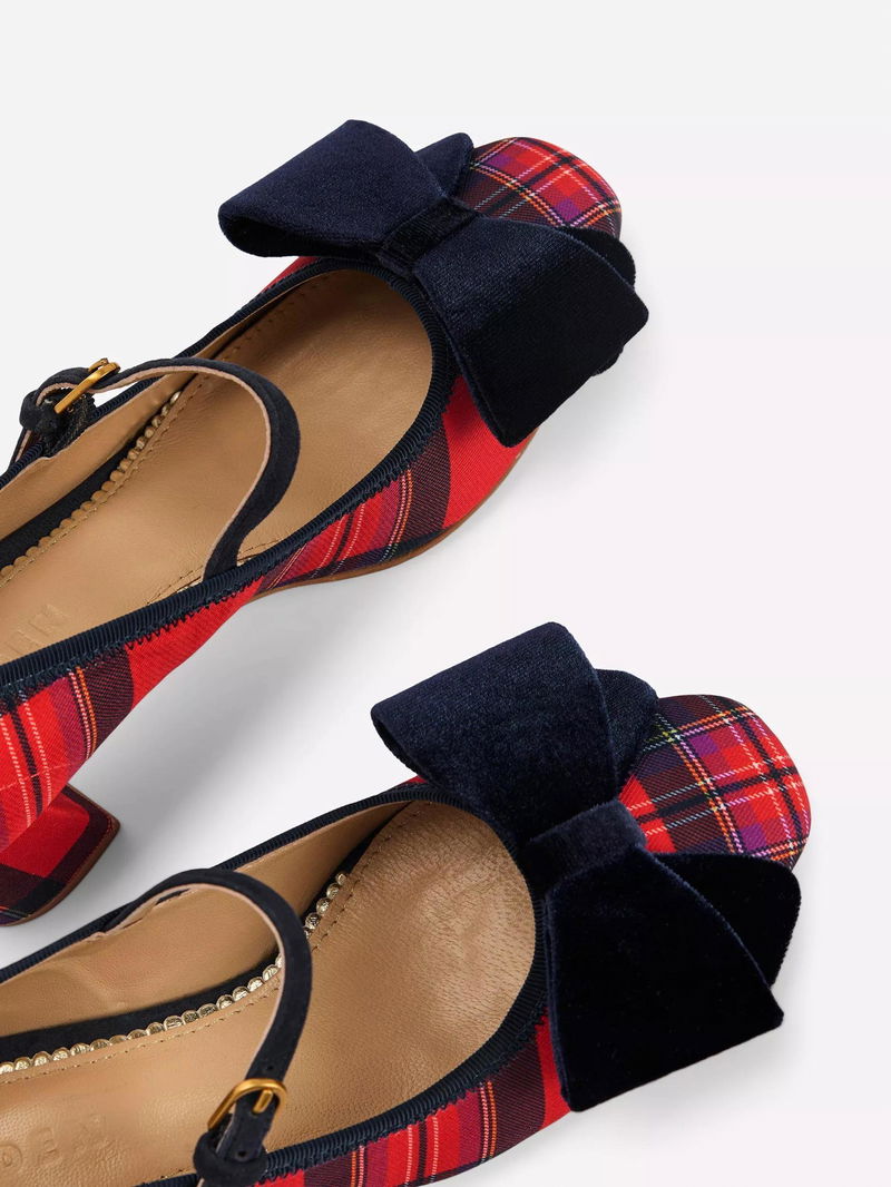 Embellished Bow Tartan Mary Jane Court Shoes, Red/Multi