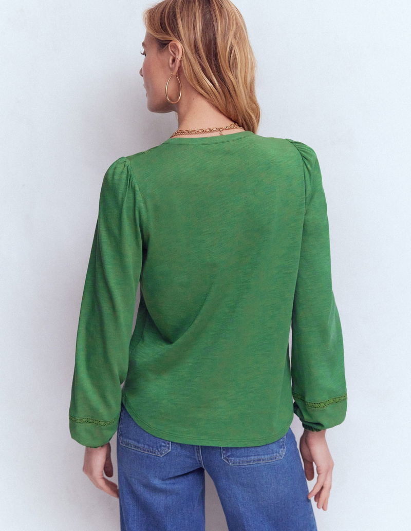 Embroidered Jersey Shirt-Willow Green
