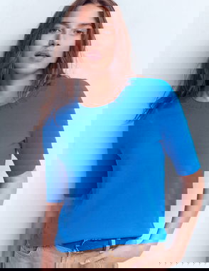 Emilia Cotton Crew T-shirt-Warm Ivory, Navy
