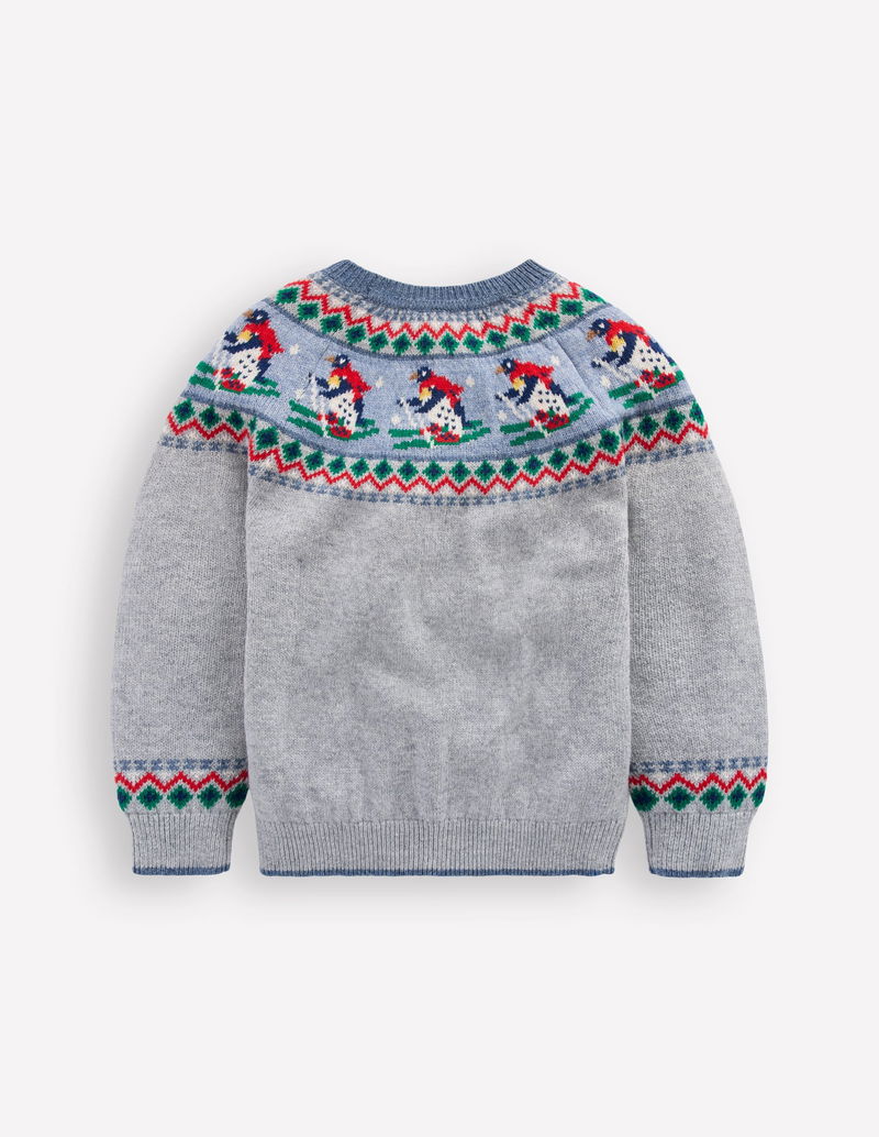 Fair Isle Jumper-Grey Marl Skiing Penguins
