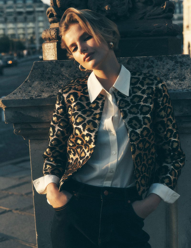 Feminine Party Jacket-Leopard, Lurex Jacquard