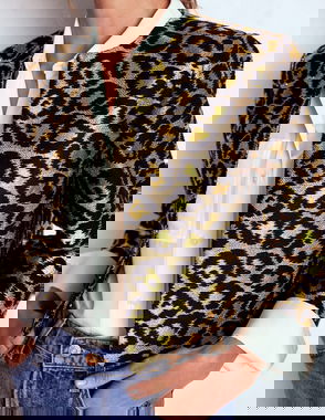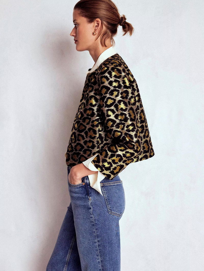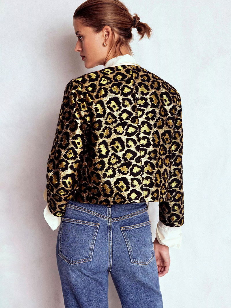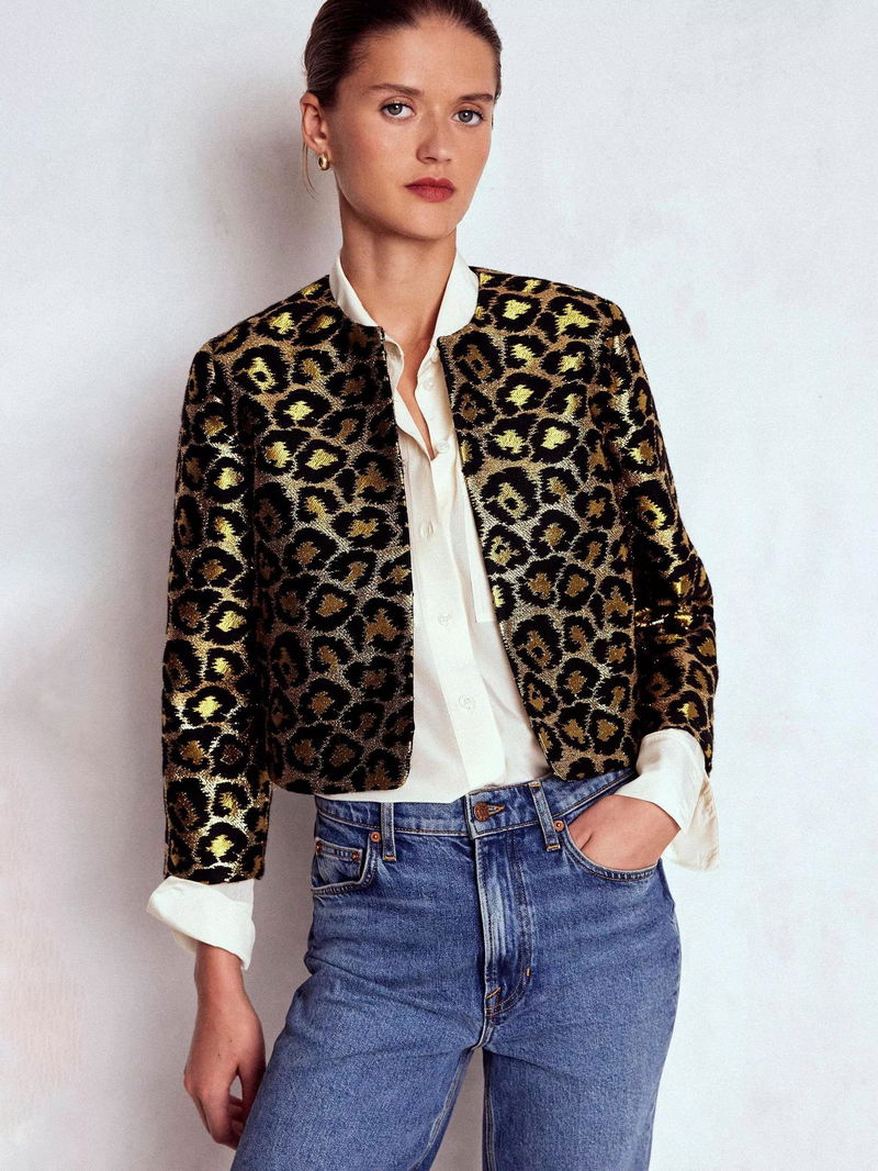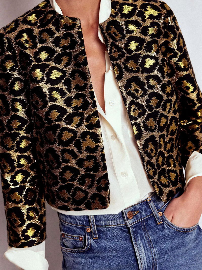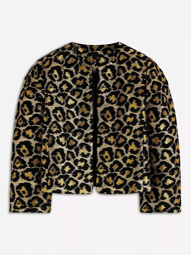 Feminine Party Leopard Print Round Neck Cropped Blazer