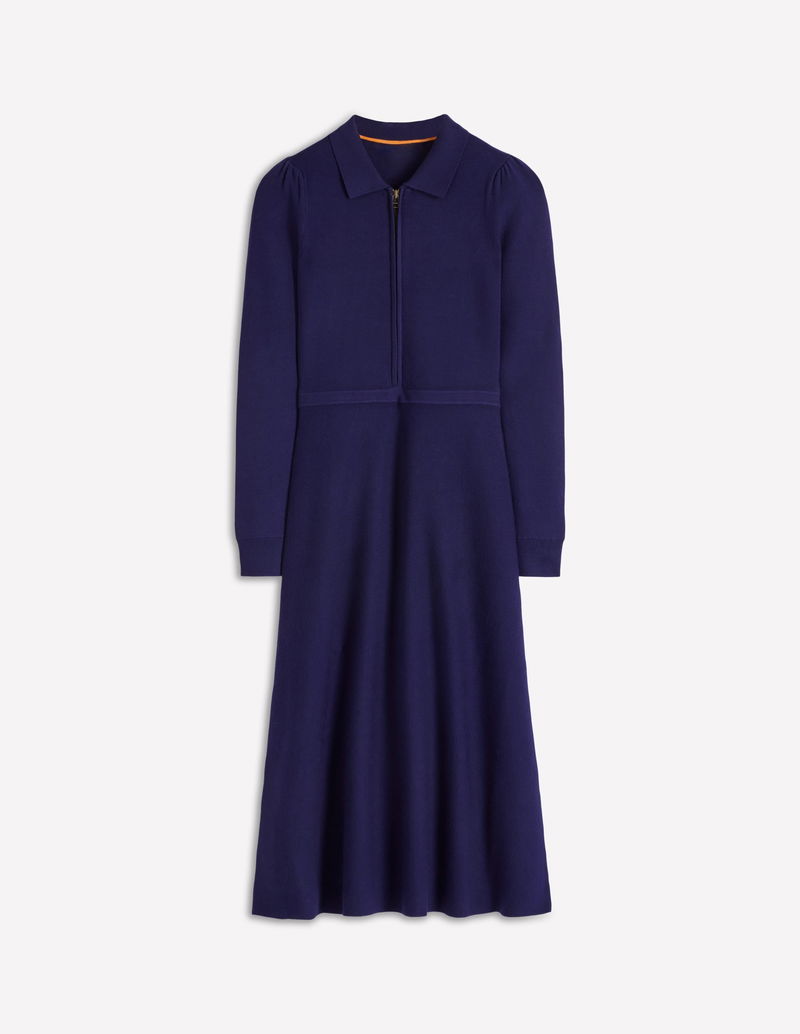 Fiona Zip Front Knitted Dress-Navy