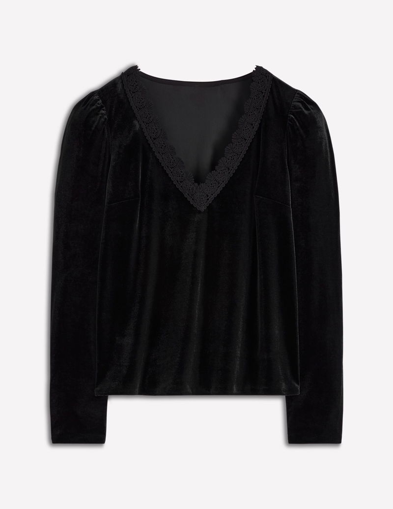 Flora V-Neck Velvet Top-Black