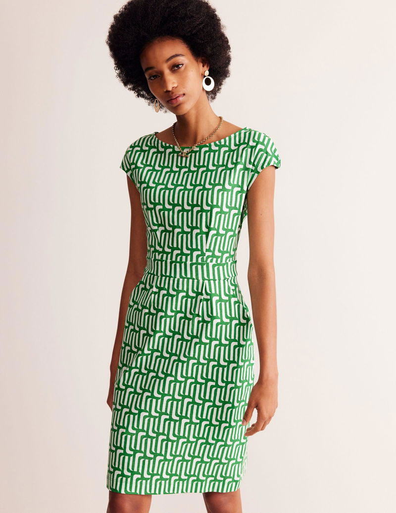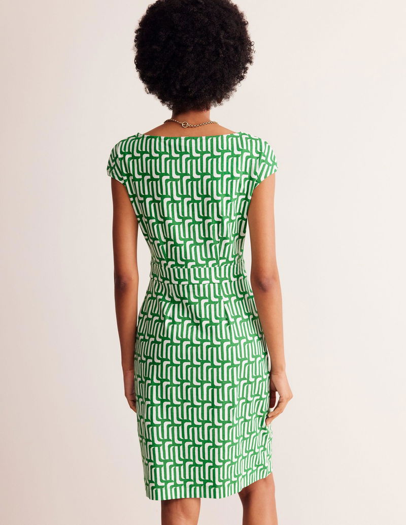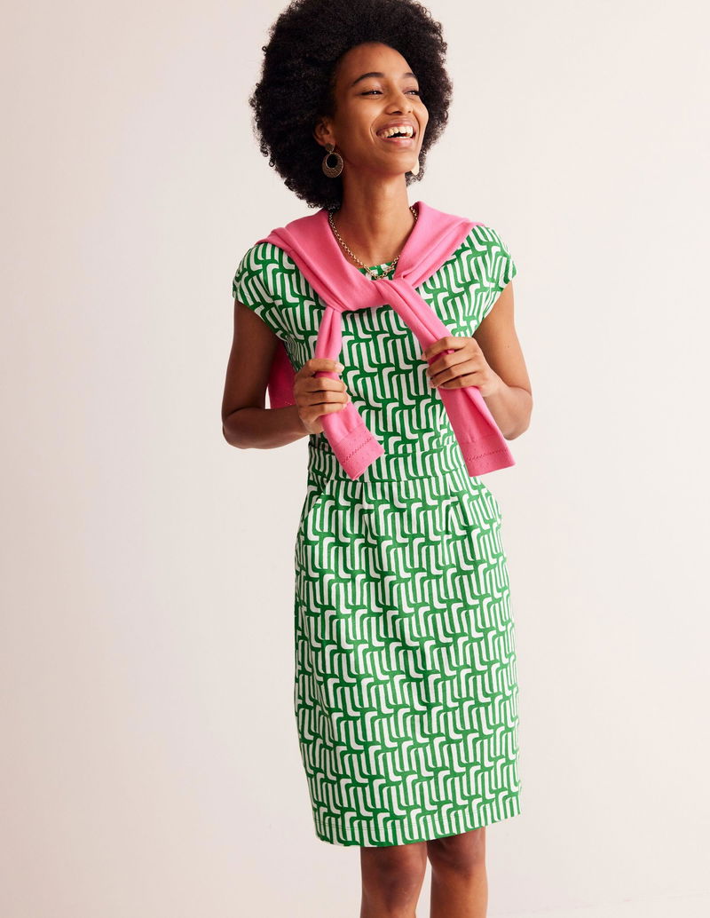 Florrie Jersey Dress-Rich Emerald, Falling Geo