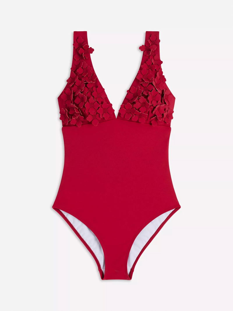 This scene-stealing swimsuit is so pretty you could wear it as a top with shorts or jeans. The “ooh, where did you get that” design features a V-neck shape and 3D appliqué flowers. Wide straps and underboost ensure a supportive fit for your upcoming beach holiday.