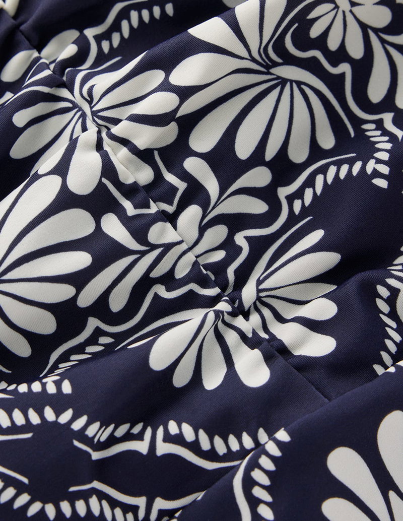 Gather String Swimsuit-French Navy, Botanical Charm
