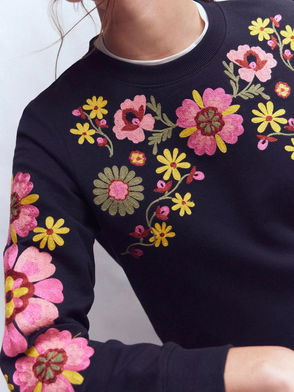 Hannah Embroide Floral Sweatshirt, Red/Multi