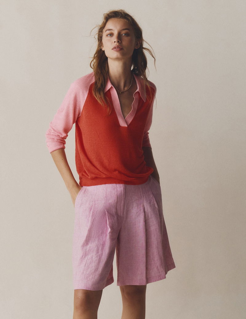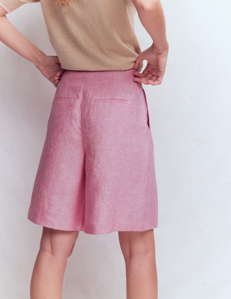Highbury Pleated Linen Shorts-Meadowsweet Pink Chambray