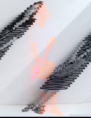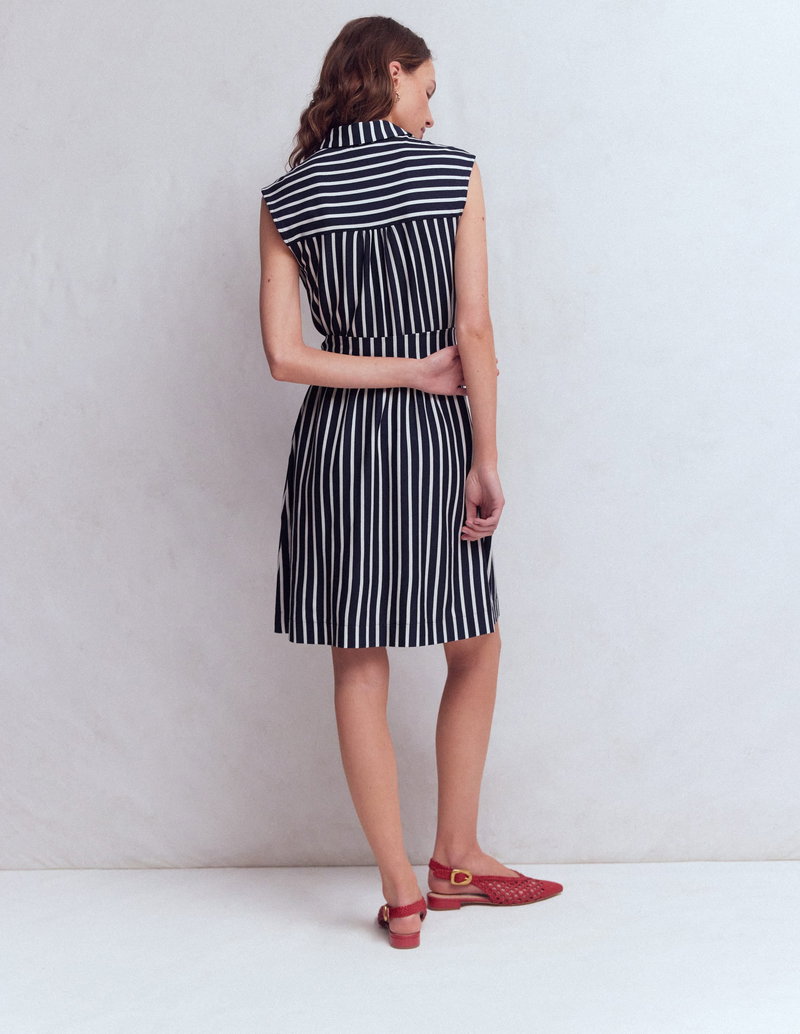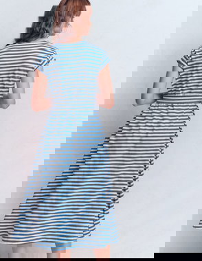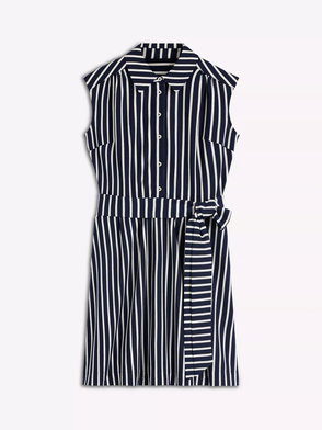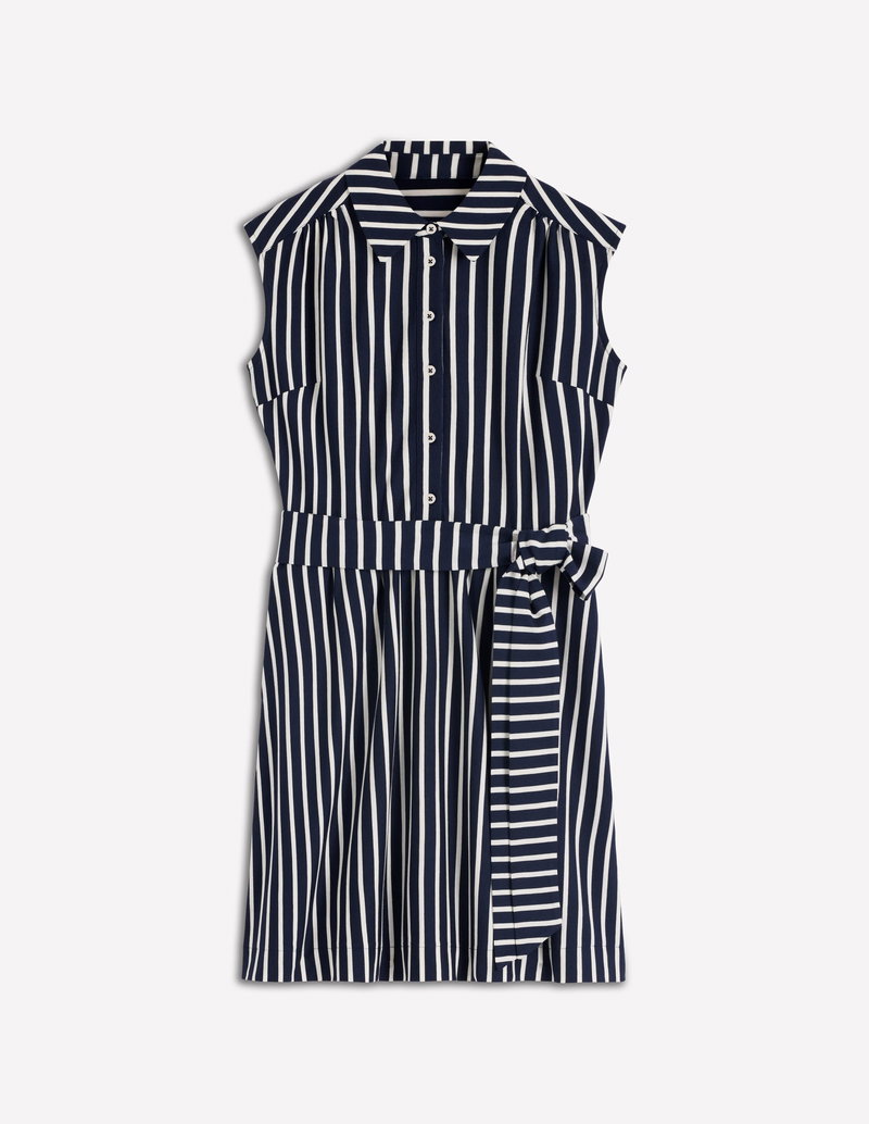 Honor Short Jersey Shirt Dress-Navy And White Stripe