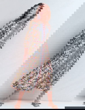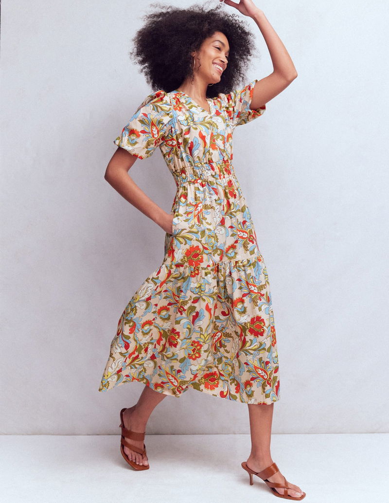 Irene Puff Sleeve Cotton Dress-Multi, Botanical Flourish