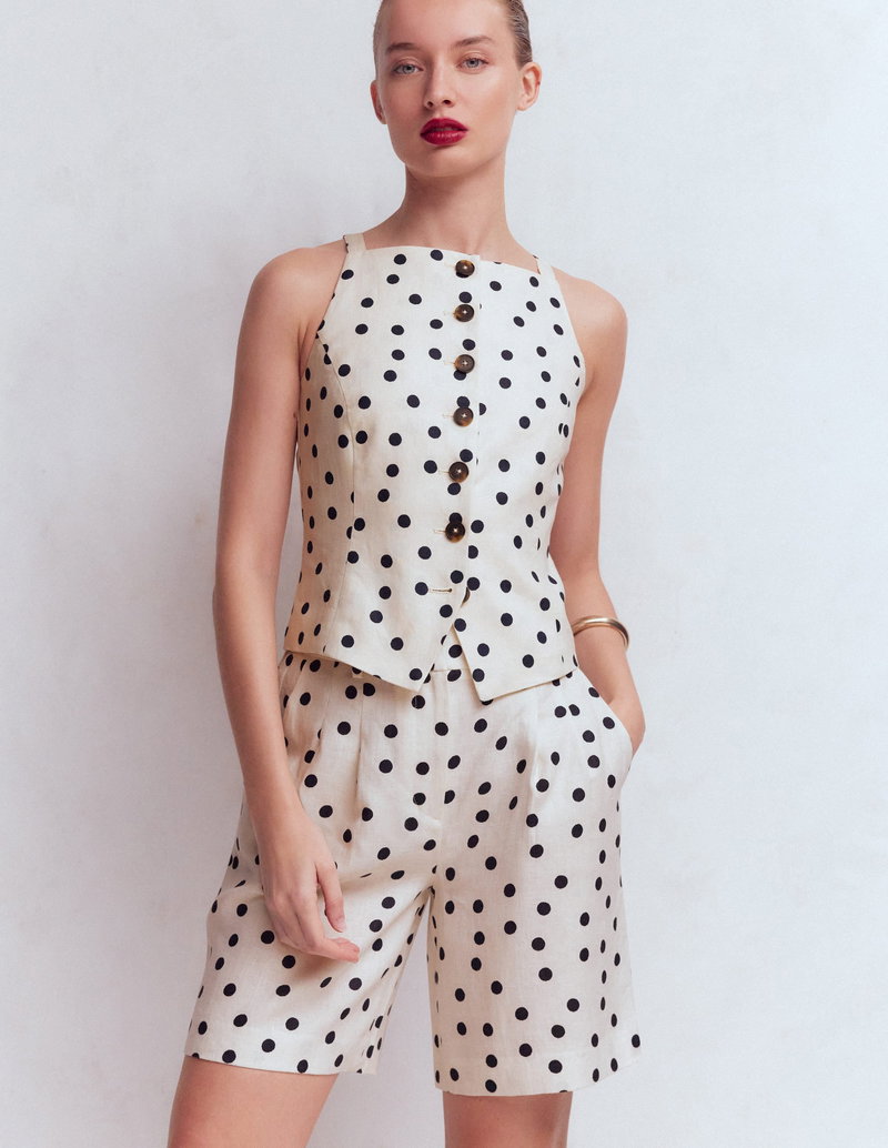 Kensington Linen Shorts-Ivory, Painted Dot
