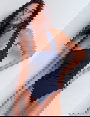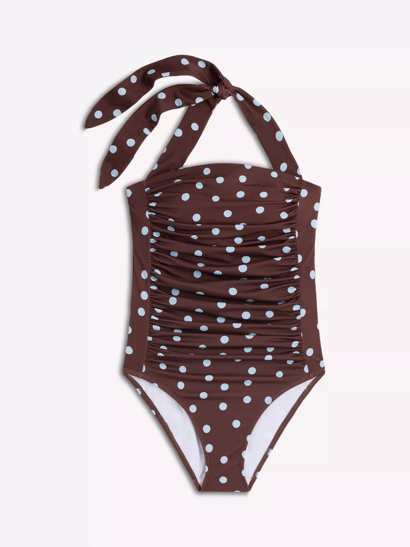 Kythira Ruched Swimsuit, Chocolate/Blue