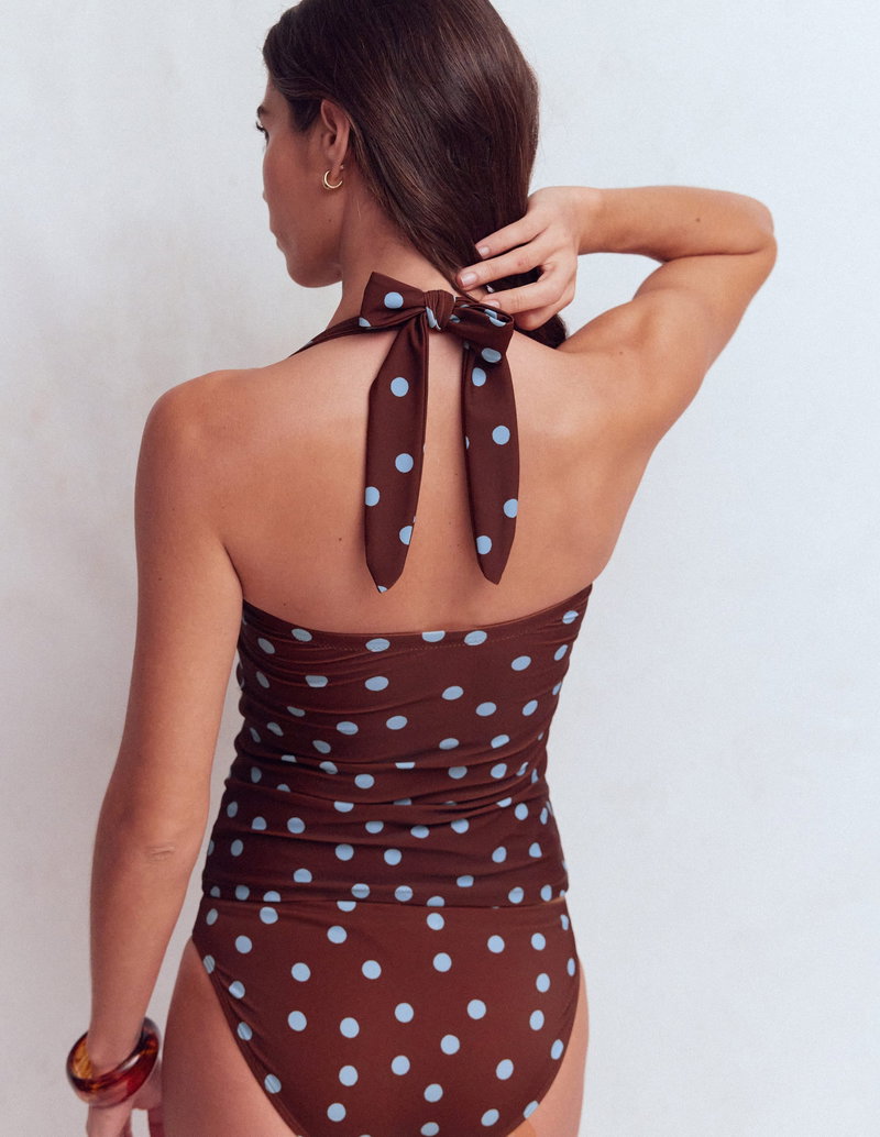 Kythira Ruched Tankini-Chocolate And Blue, Dot