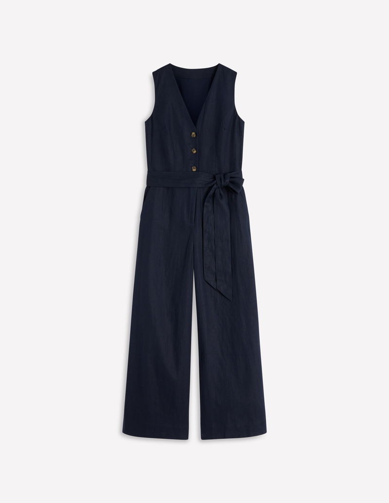 Laura V-neck Linen Jumpsuit-Navy