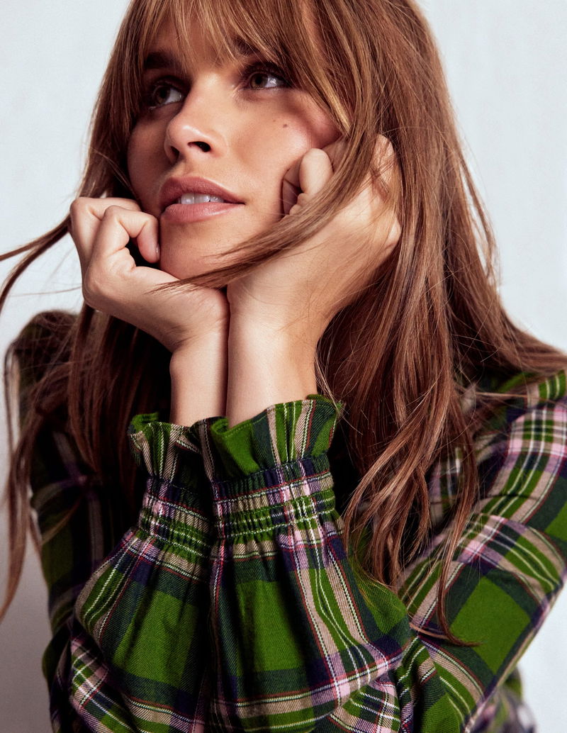 Lorna Brushed Cotton Top-Green, Navy & Pink Check